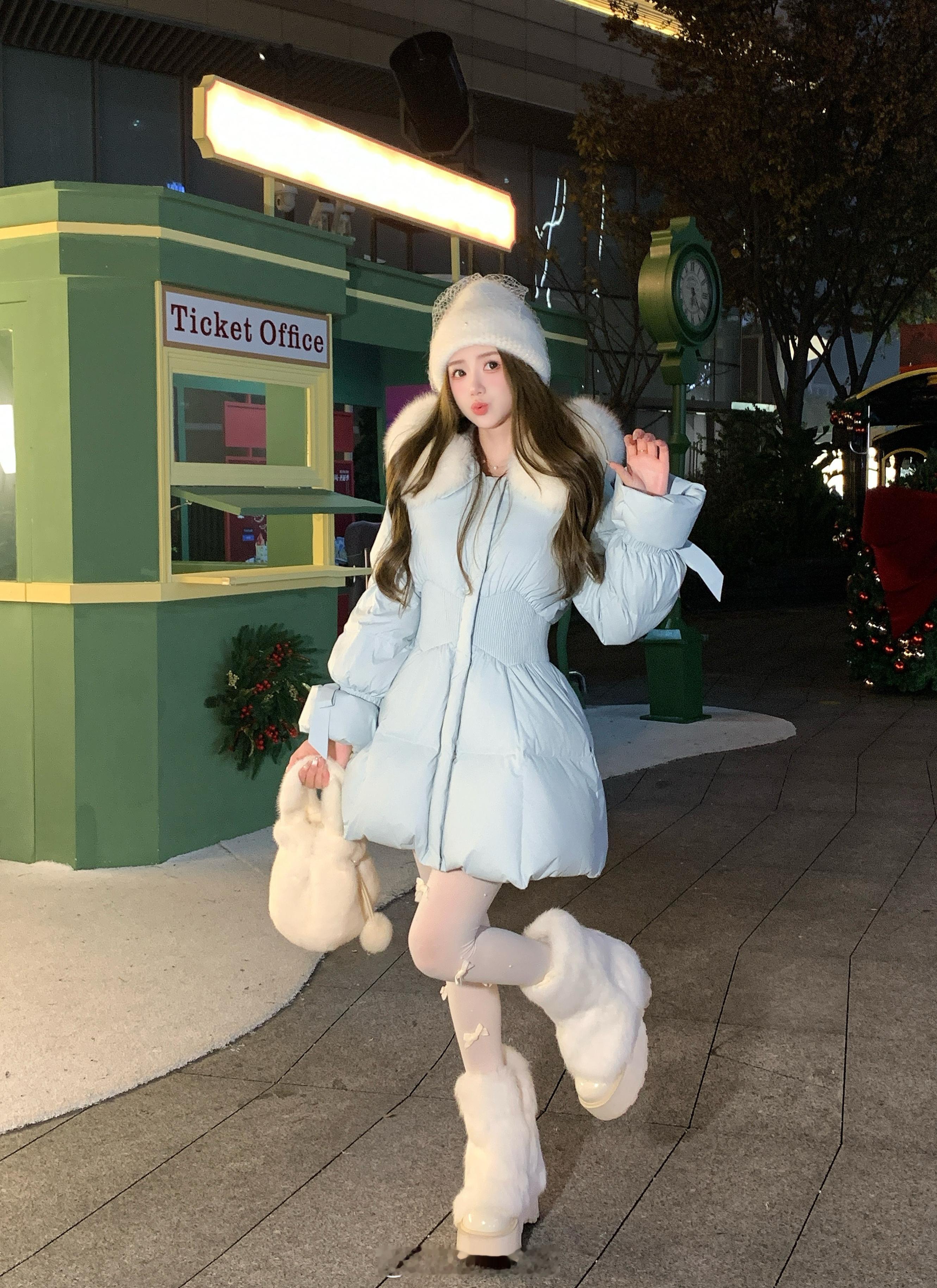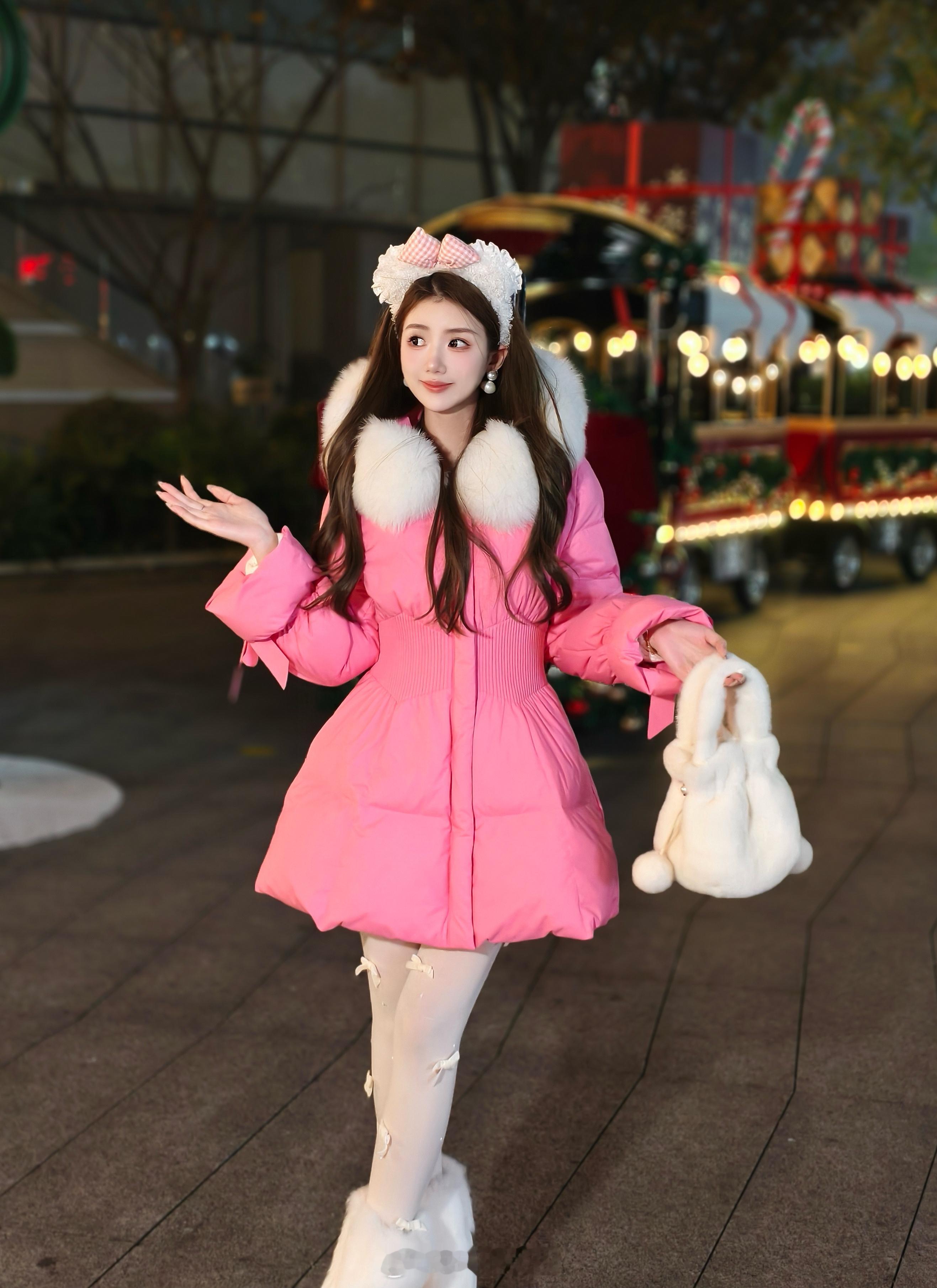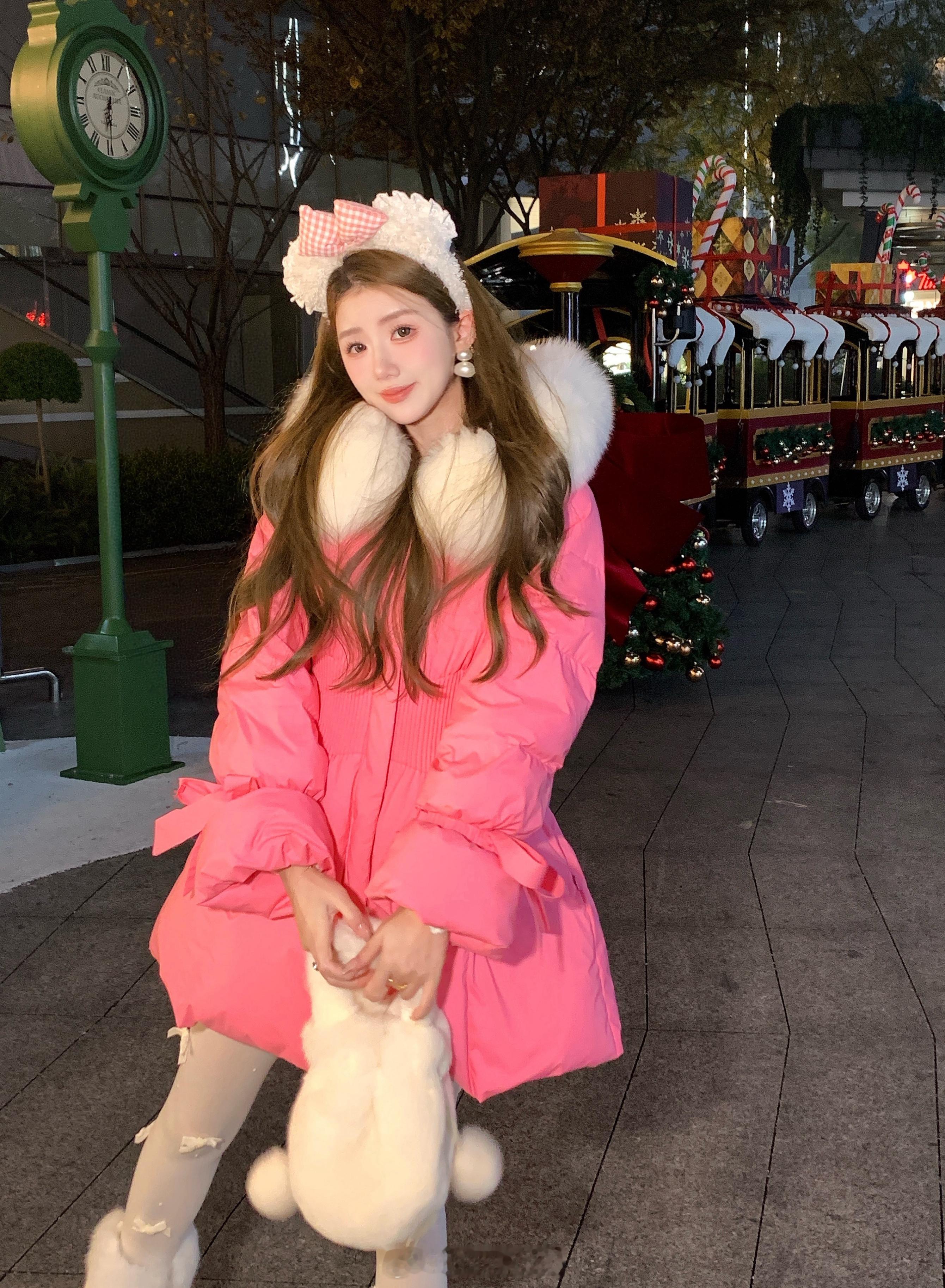 正在开这款↓草莓布丁羽绒外套 and 羽绒马甲都配有腰带哦,显腰身显腿长两种穿法