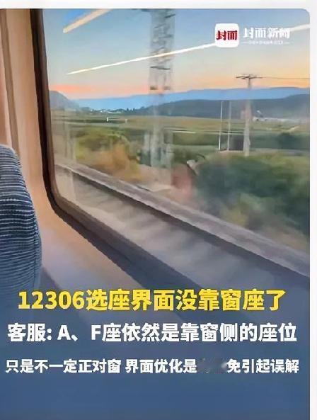 最近,12306购票选座的界面悄悄换了新样式,之前能看到的“靠窗座位”里的“窗”字直接消失了!不少网友在选座位的时候就发现,屏幕上显示的座位旁边再也没有“窗”字了,取而代之的是“两堵墙”,一下子就犯迷糊了。 12306的客服人员也出来解释了,说这次更新其实就是界面优化,并没有改座位规则,A座和F座还是靠窗的位置。不过工作人员也老实承认,这些A、F座虽然还是标着靠窗,但实际位置可能没那么准,有的可能在窗户前面,有的可能在窗户后面,不一定正对着窗户。这么一来,咱们平时以为的“靠窗座”,说不定以后就成了“望墙座”了! 说起来,高铁座位的设计真挺难的,既要保证安全,又得照顾大家看风景的需求。这次界面改得这么“抽象”,虽然让不少人有意见,但至少能看出来铁路部门在听咱们老百姓的想法了。下次买票选座位,你会特意去看座位是不是真的靠窗吗?