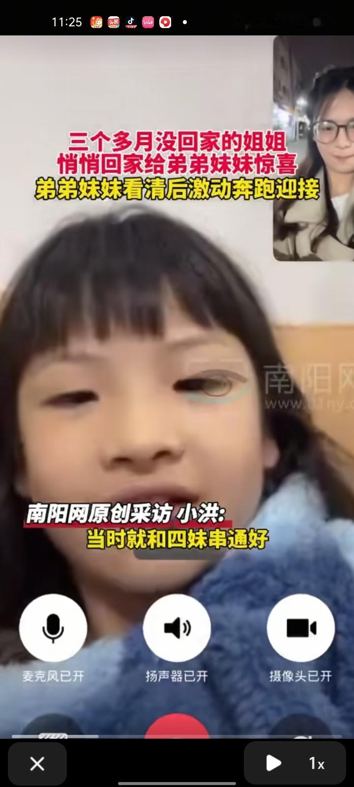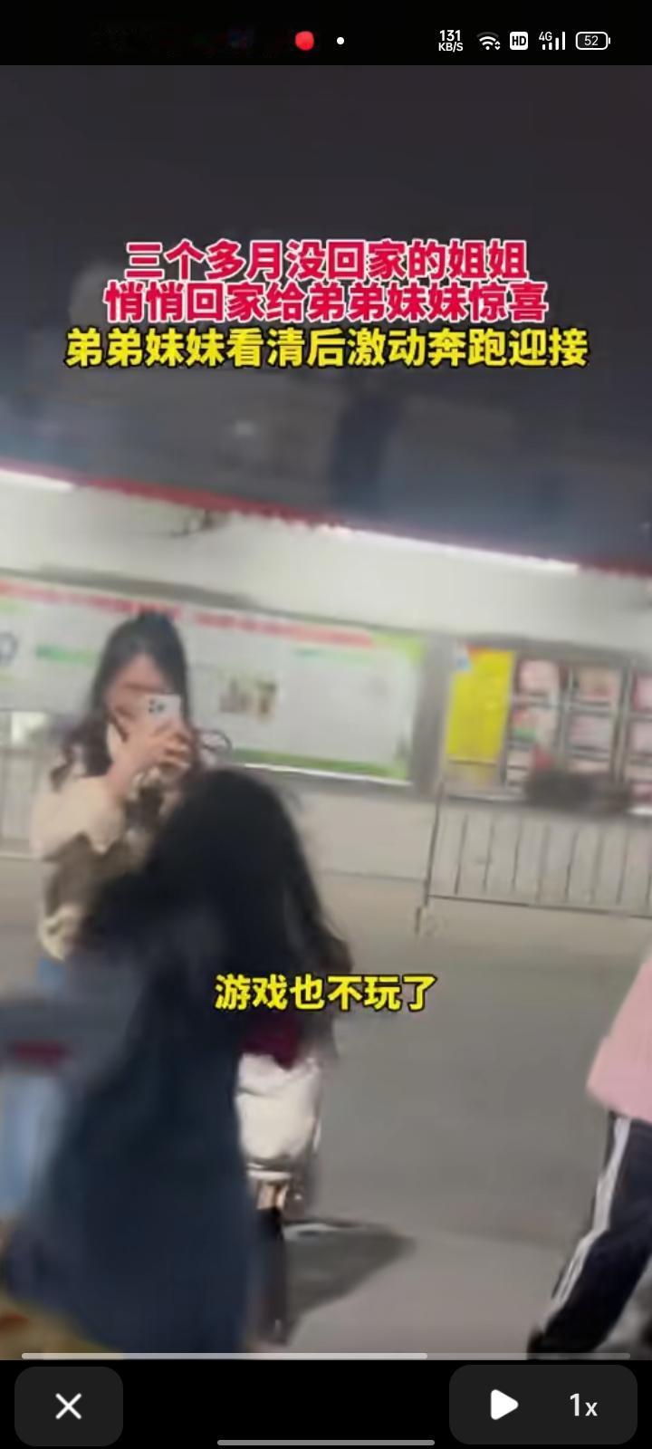 12月5日,广东汕尾。三个多月没回家的姐姐悄悄回家打视频过去,给弟妹一个惊喜,弟妹看清她的脸后激动奔跑迎接。 当事人称,我们是六姐弟,自己是老大,老二和老三在上班没回来,老四老五老六在家。六姐弟从小感情很好,自从我出来上学上班后,回家次数就少了。