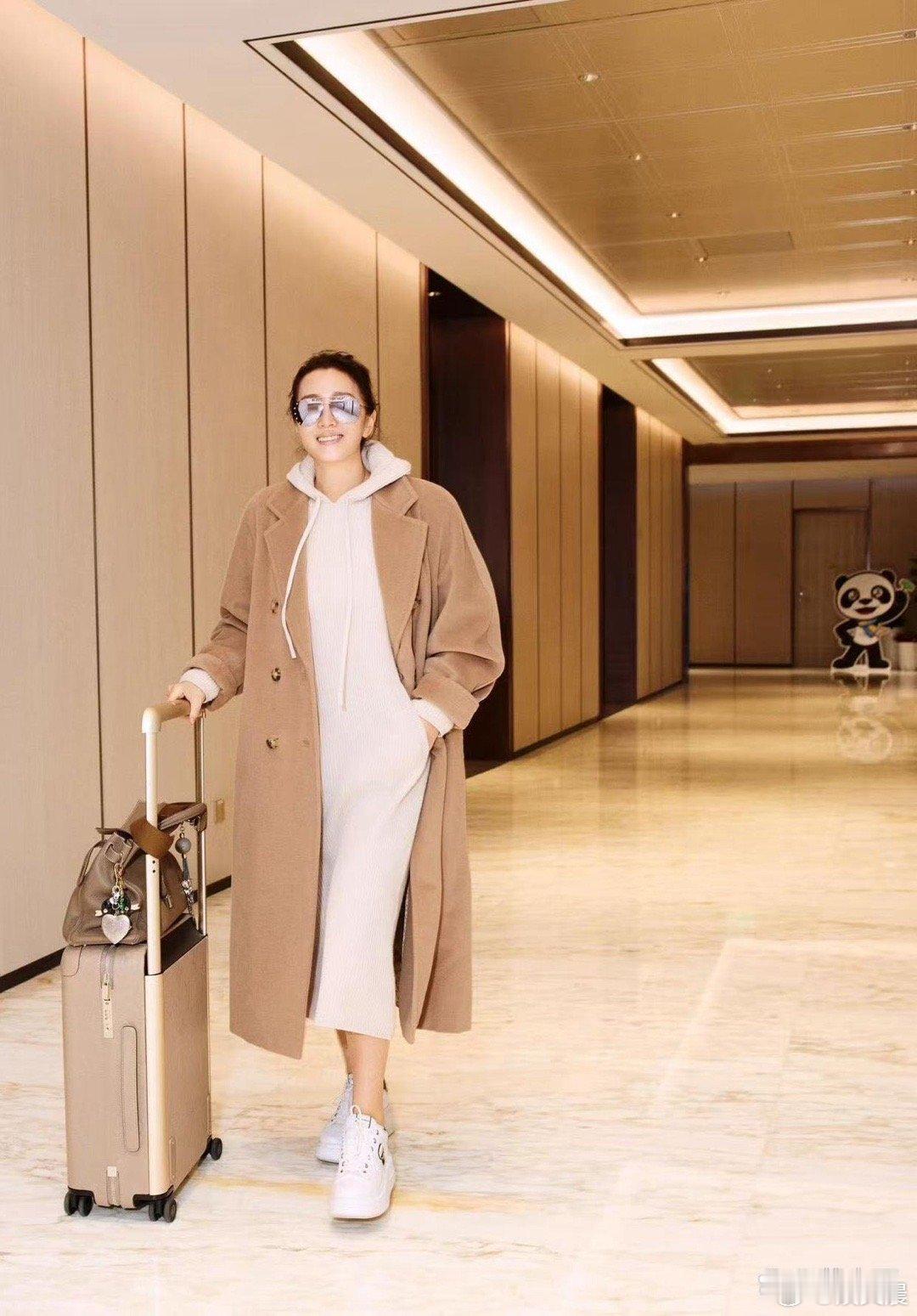 巩俐换风格直接美出新高度!驼色大衣搭配连帽针织裙,气质大变样,时髦休闲又透着高级感,气场依旧拉满~