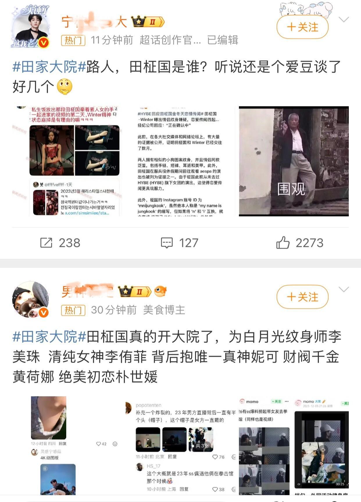 田家大院 田柾国粉丝和田栩宁粉丝在交流?