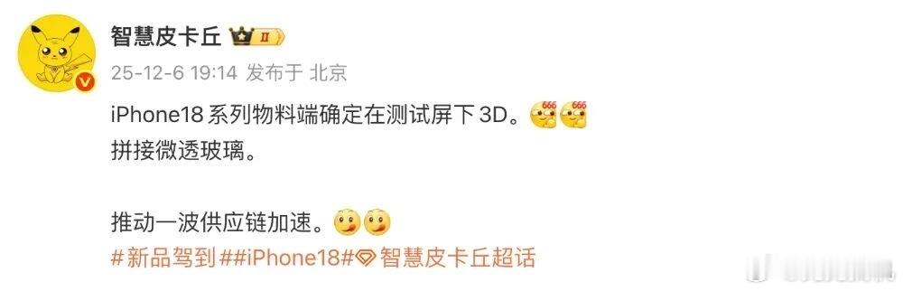 曝iPhone18系列测试拼接微透玻璃苹果连续两代挤牙膏?随着今年iPhone 17系列外观大变后 iPhone 18 系列据传要上 屏下 3D 指纹识别了拼接微透玻璃实现,那这样的话真全面屏时代似乎也不远了。