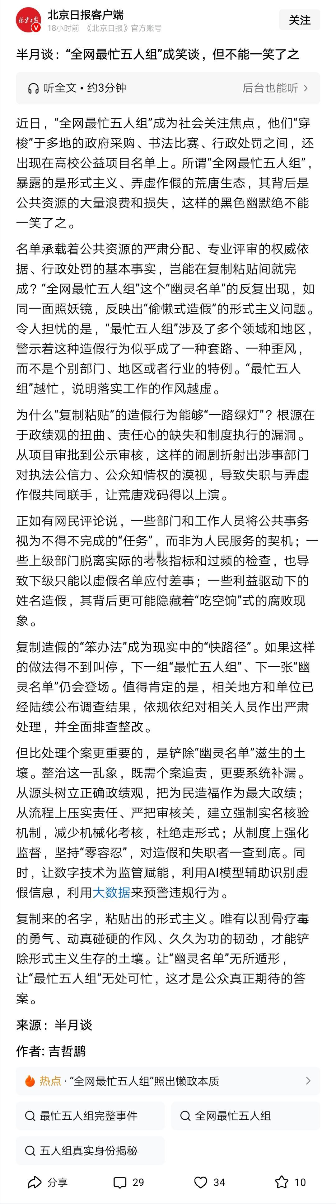 如果没有持续的跟踪、关注、监督,“最忙五人组”很可能的走向是“一删了之”,“不了了之”。