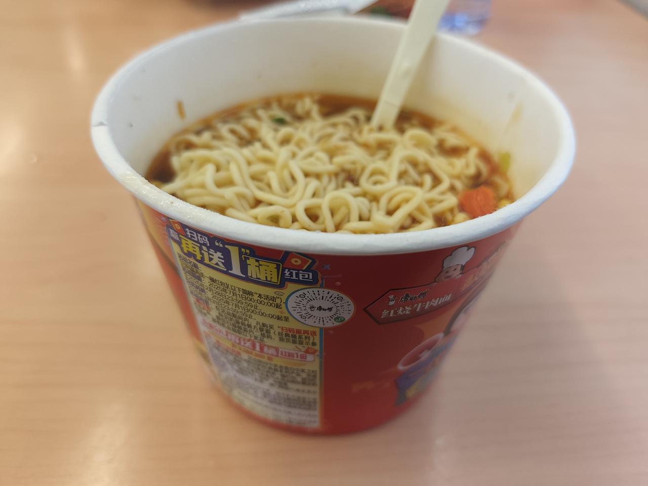 很久没有在动车上吃方便面了,今天感觉特别香。 今天出来办事,办的很顺利,出来已经是中午了。 计划到火车站看看有没有麦当劳吃一次,可这个车站居然没有!那吃什么呢?我问嘴巴!它突然很想吃方便面,就在火车站里花了10元买了一桶,找个开水房冲泡起来。 等绿灯灭了水就是好的,我怕动车上的水不热,我有几次遇到过,感觉那个水差点火候,茶叶泡不开。 里面有三包调料。一包粉状,一包蔬菜,一包牛肉酱,我把所有调料放进去,开水冲进去,香味飘了出来。 我端到火车上吃的,找个座位,慢慢享受,面条不烫,不是很烂,口感舒适,感觉可好吃。 方便面很久没吃,偶尔吃一次觉得特别香。 突然很想吃就说明身体里需要这个味道,那就吃吧! 友友们,你们会在动车上吃方便面吗?还是已经许久没吃了?