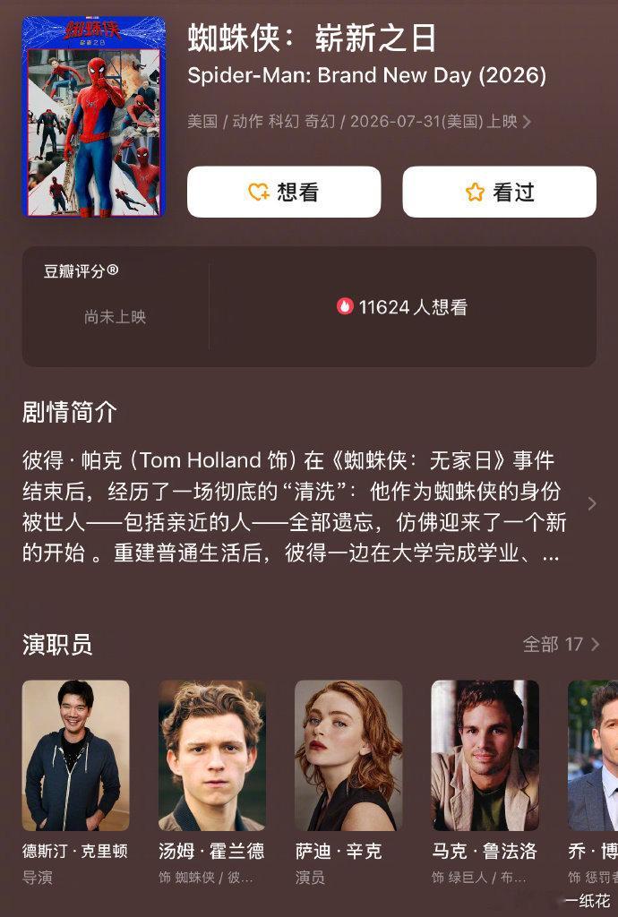 《蜘蛛侠4》拍摄历时4个月,正式杀青啦。主角天团除了荷兰弟、赞达亚、雅各布,还有“绿巨人”马克·鲁法洛、“惩罚者”乔·伯恩瑟,“毒蝎”迈克尔·曼多以及新出演的萨迪·辛克。目前影片已定档2026年7月31日北美上映,期待内地同步上映。