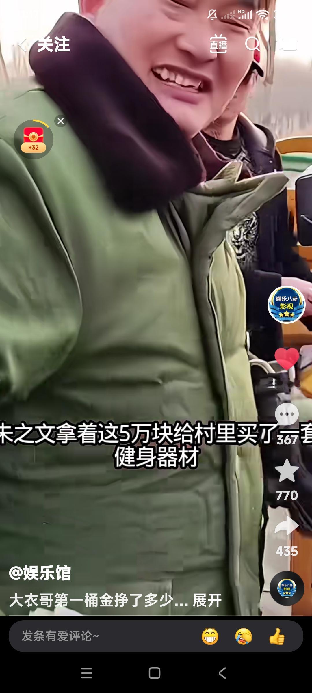大衣哥朱之文,从他第1次得到奖励的时候。 就体现出他的孝心和爱心。 在山东电视台我是大明星节目里得了冠军,5万块钱奖金。 拿到奖金,第一时间想到他的老娘。 如果娘活着,他就把这5万块钱给他老娘,让他老娘高兴,可惜老娘已经不在了。 朱之文没有留下,而是拿着5万块钱给村里买了一套健身器材。 所以我觉得朱之文还是一个好人吧,是一个有德行的人。