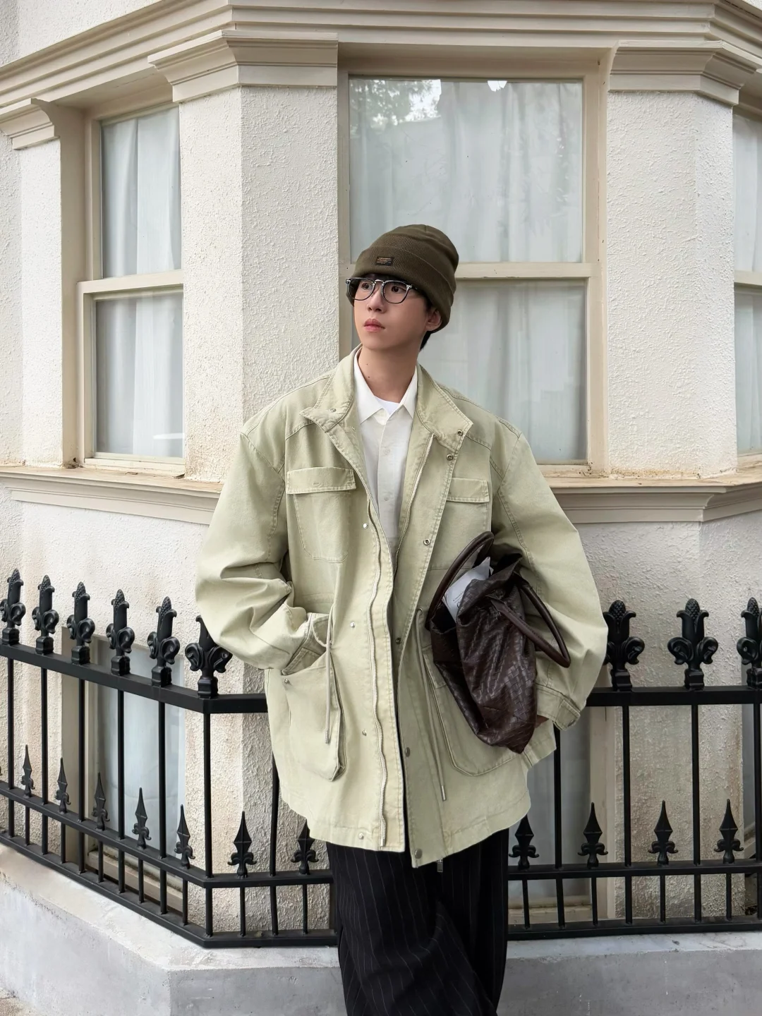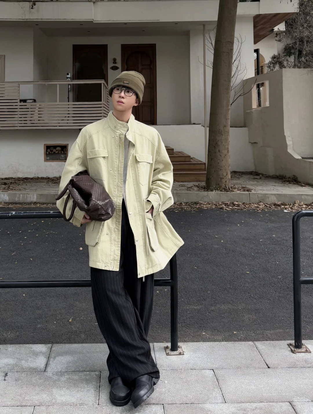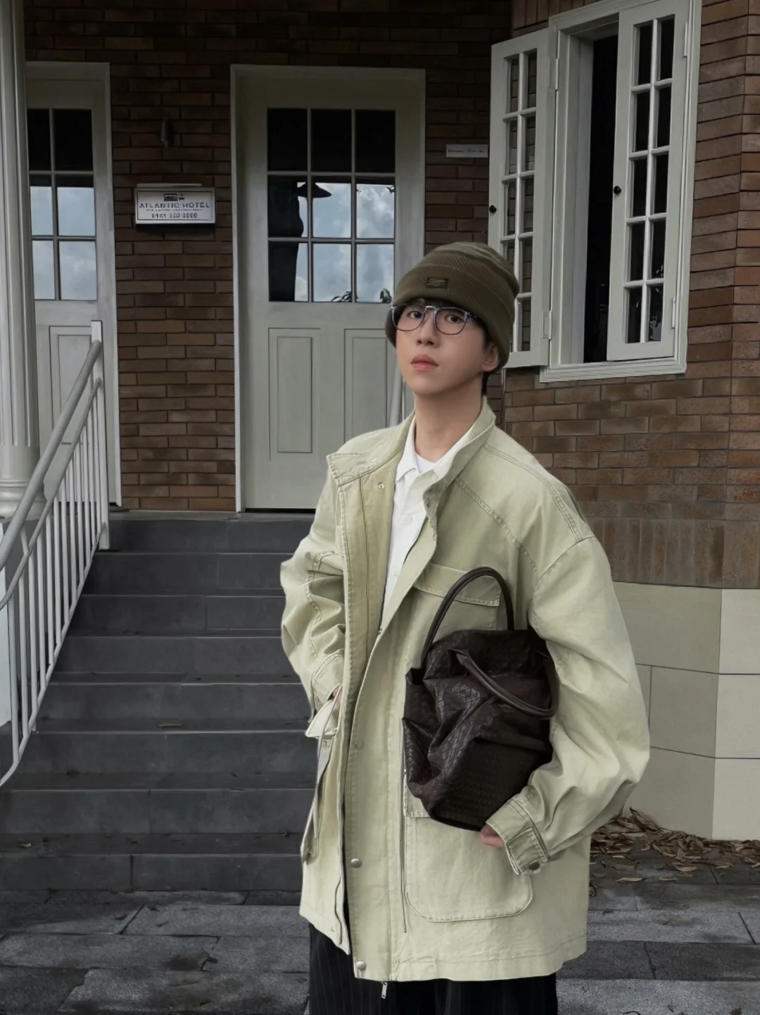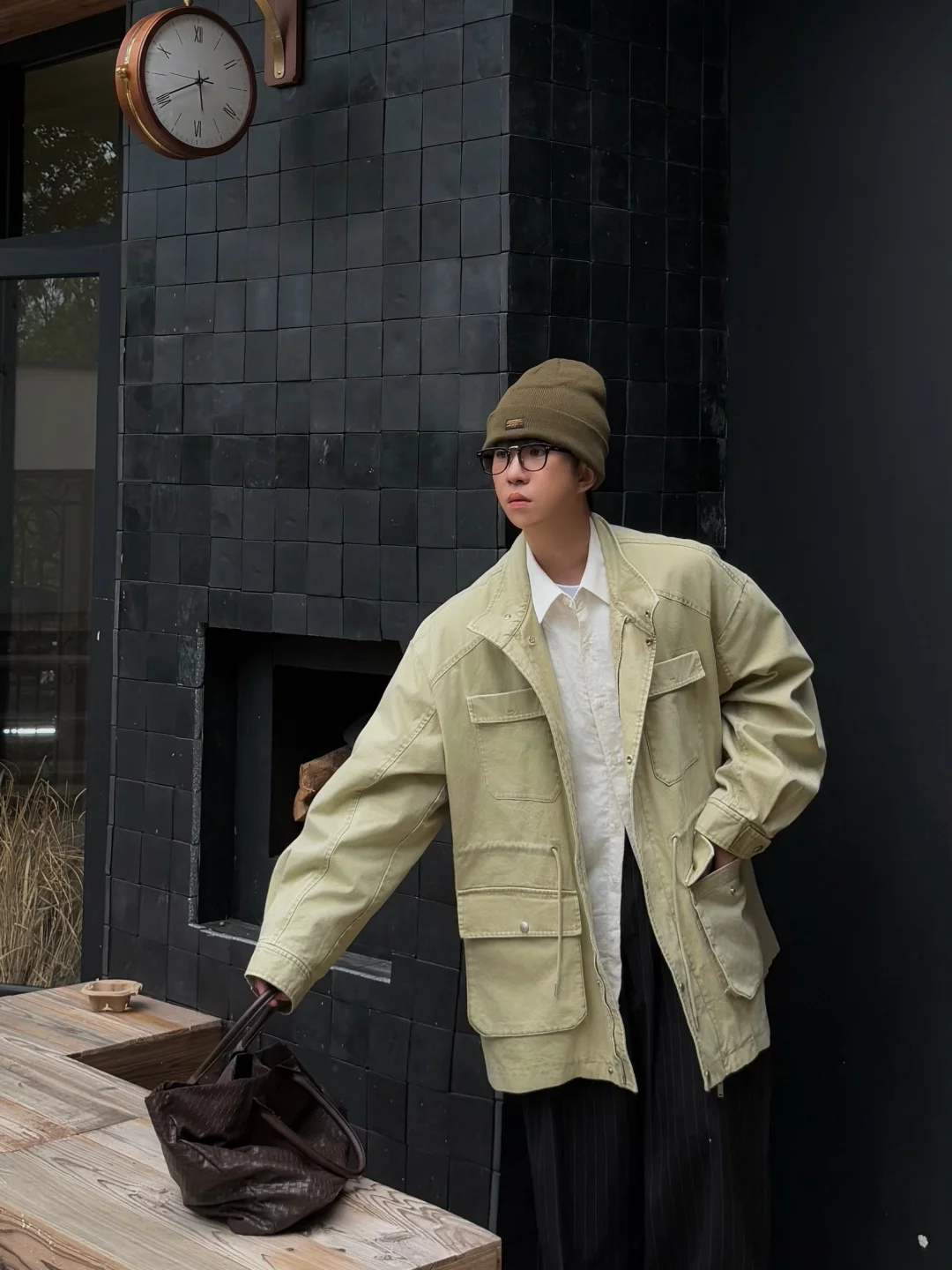 📝 秋天很容易被这种简单基础款搭配所吸引 简约时髦不费力 尤其是不能少了卡其色工装风中长款立领风衣 日常叠穿 慵懒又随性 轻松打造出松弛氛围感 用宽松轮廓与做旧工艺演绎CORTIS风亚裔美式混合美学 ————————————————————————
