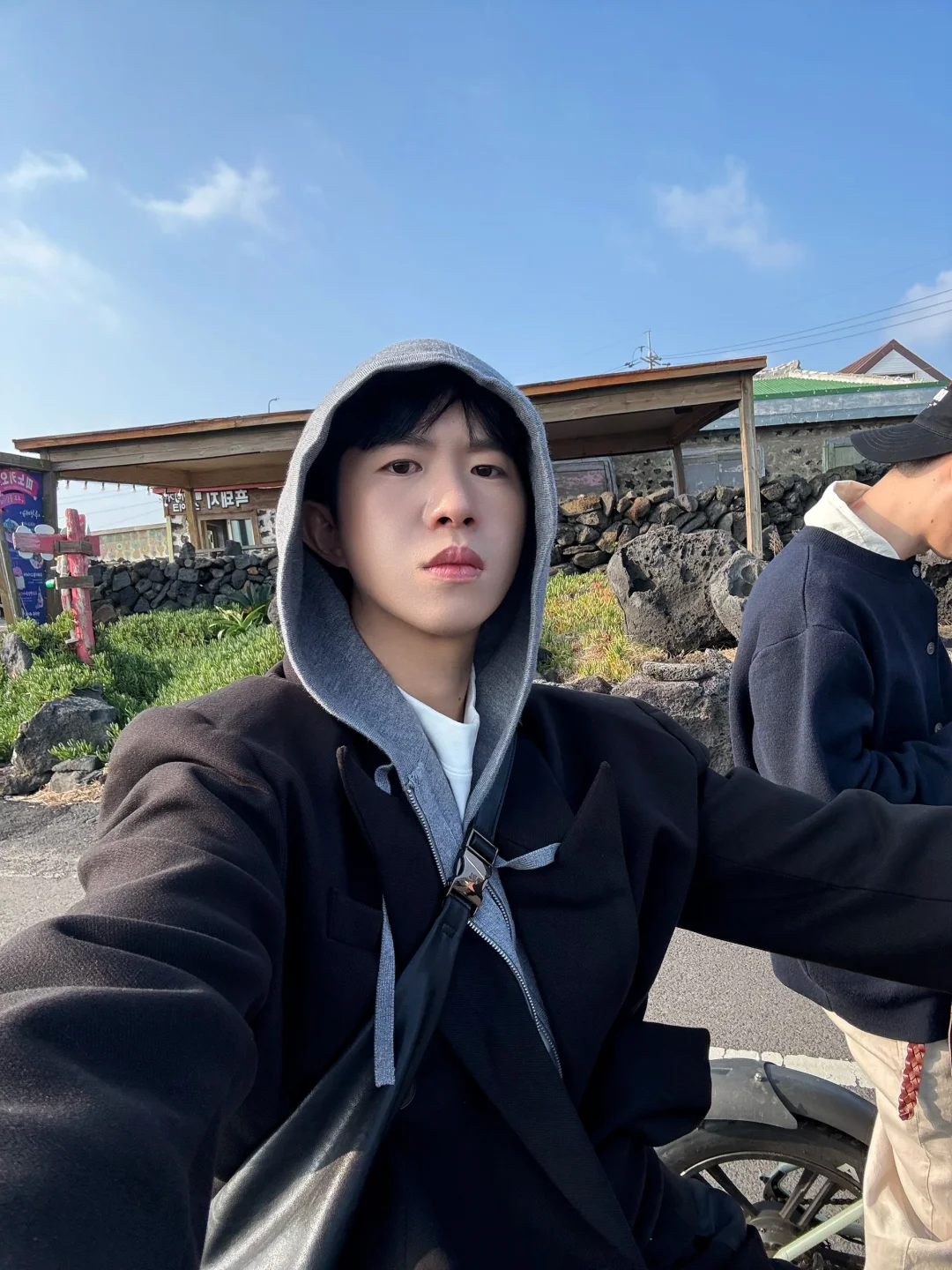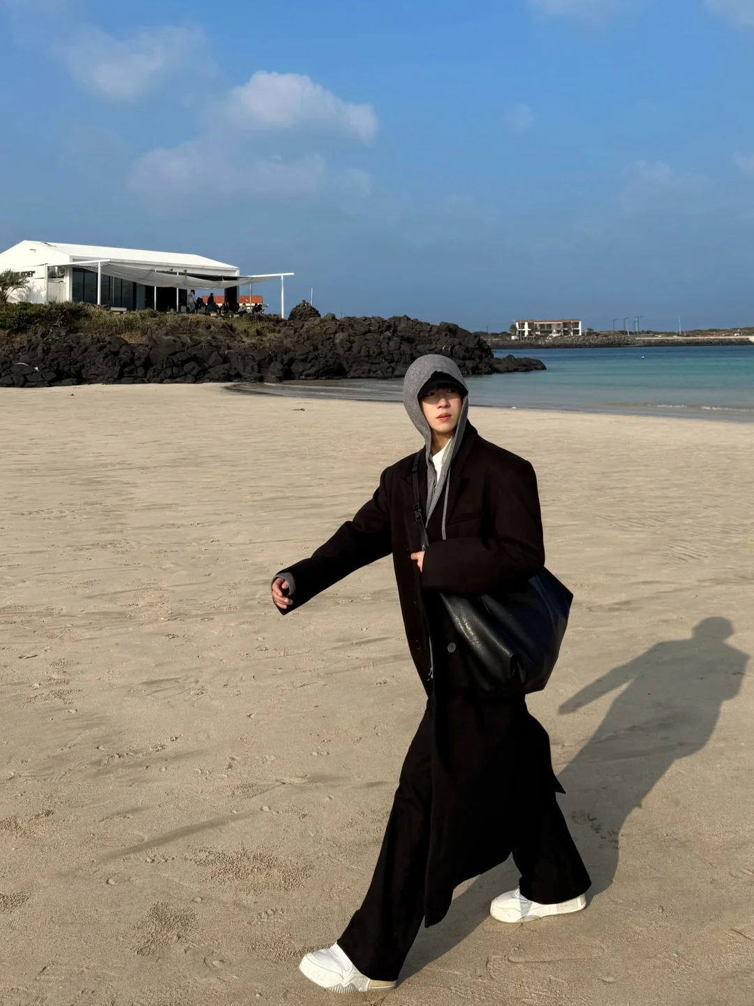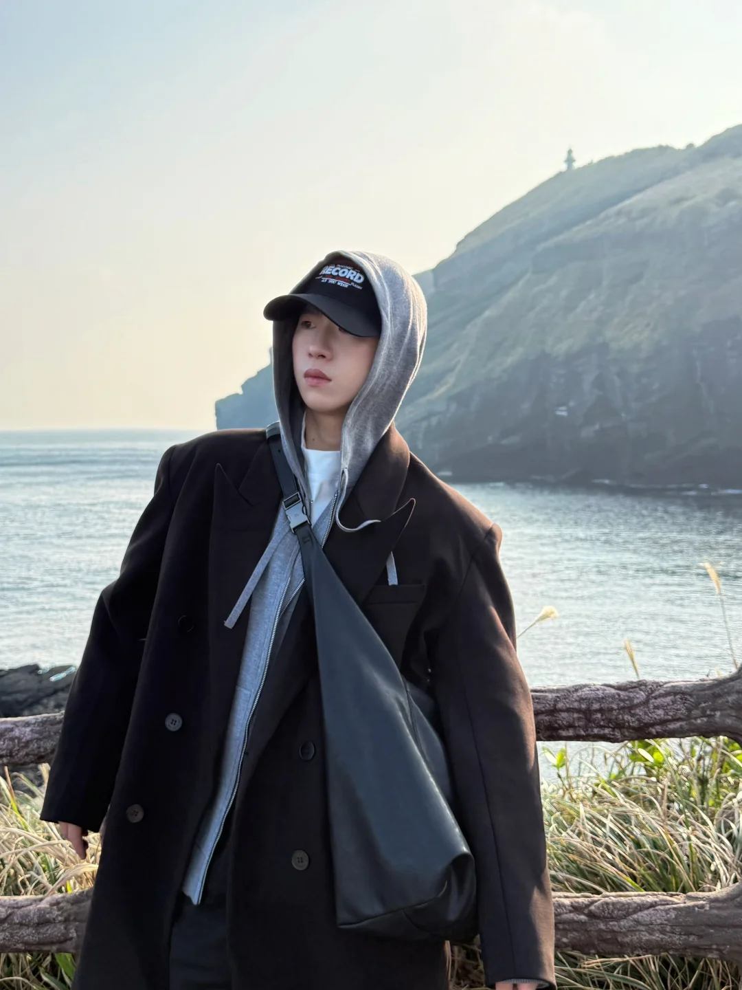 去牛岛上环岛骑行了 果冻海太美了 随便拍拍都很韩系 今日搭配跟着「难哄」剧中白敬亭,学习廓形搭配 ——————————————————