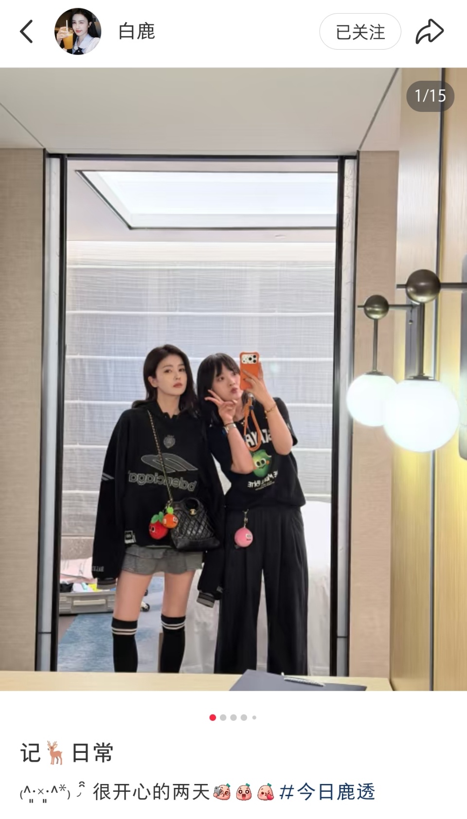 白鹿晒和闺蜜合照白鹿很开心的两天白鹿晒闺蜜合照了真的好羡慕啊有这样的闺蜜我