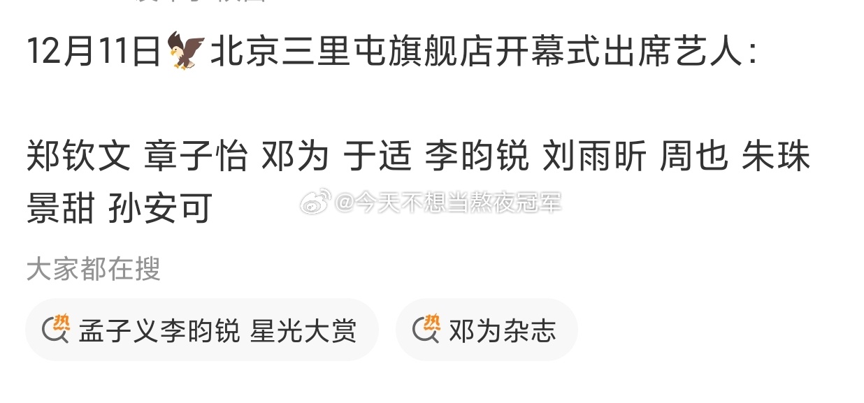 🍉🍉12月11日🦅北京线下活动出席的艺人🈶 邓为 于适 李昀锐 刘雨昕 章子怡 郑钦文