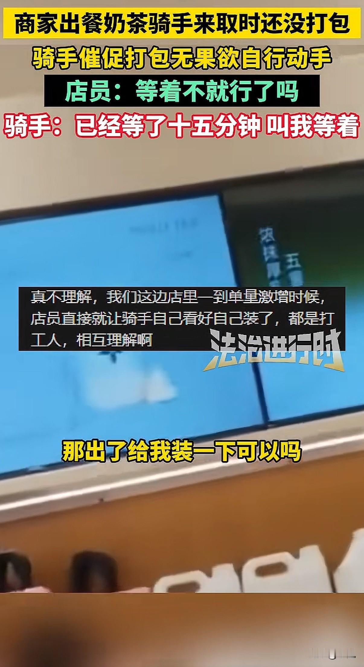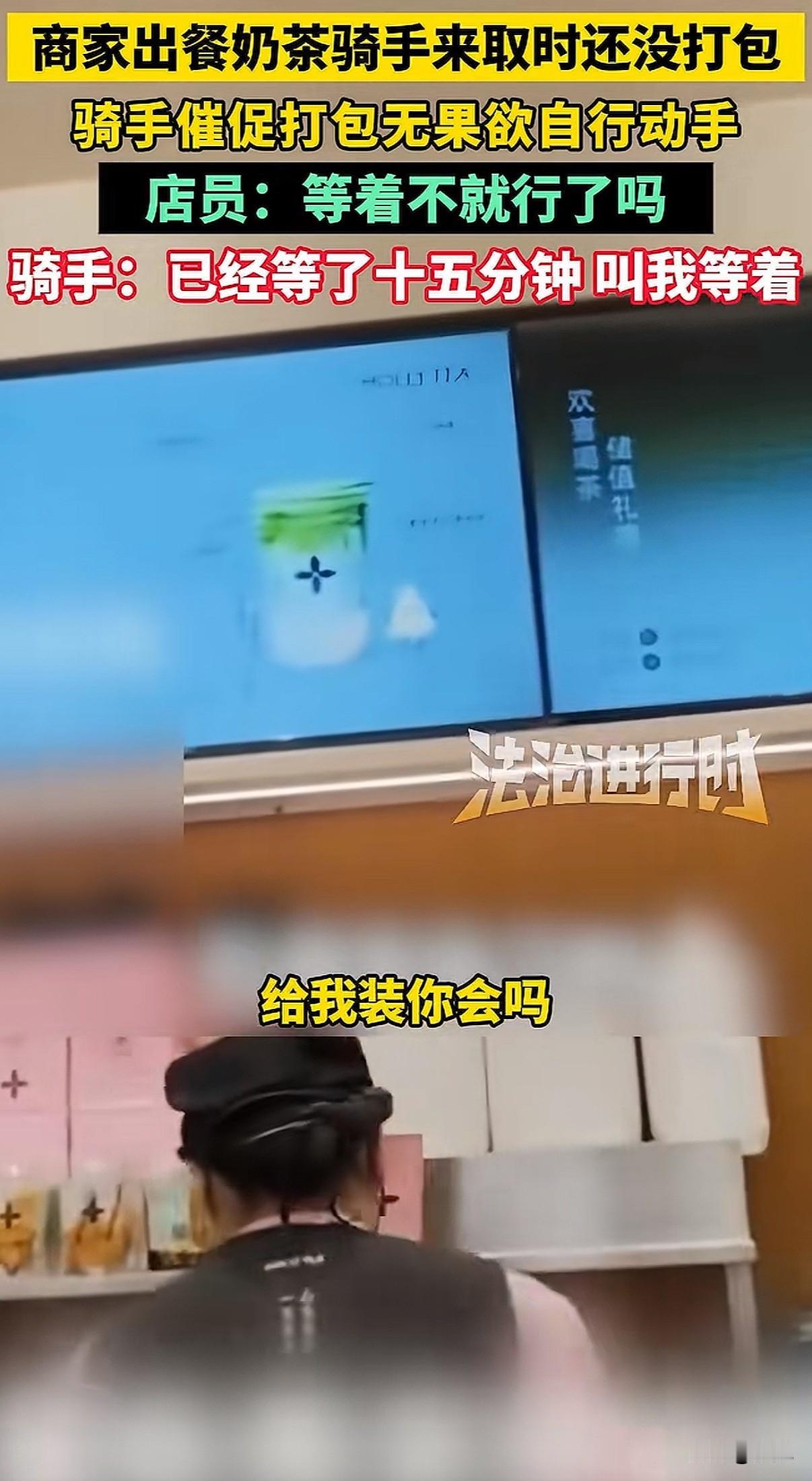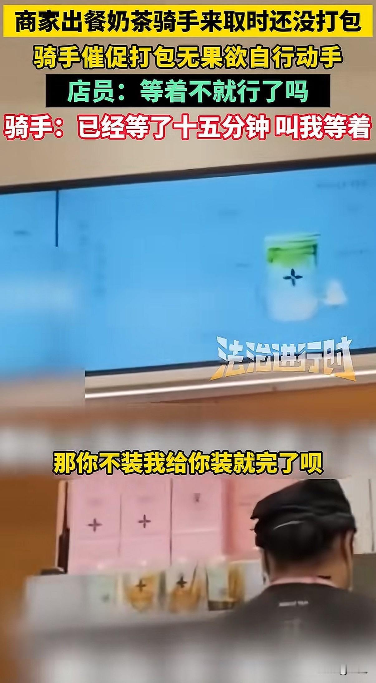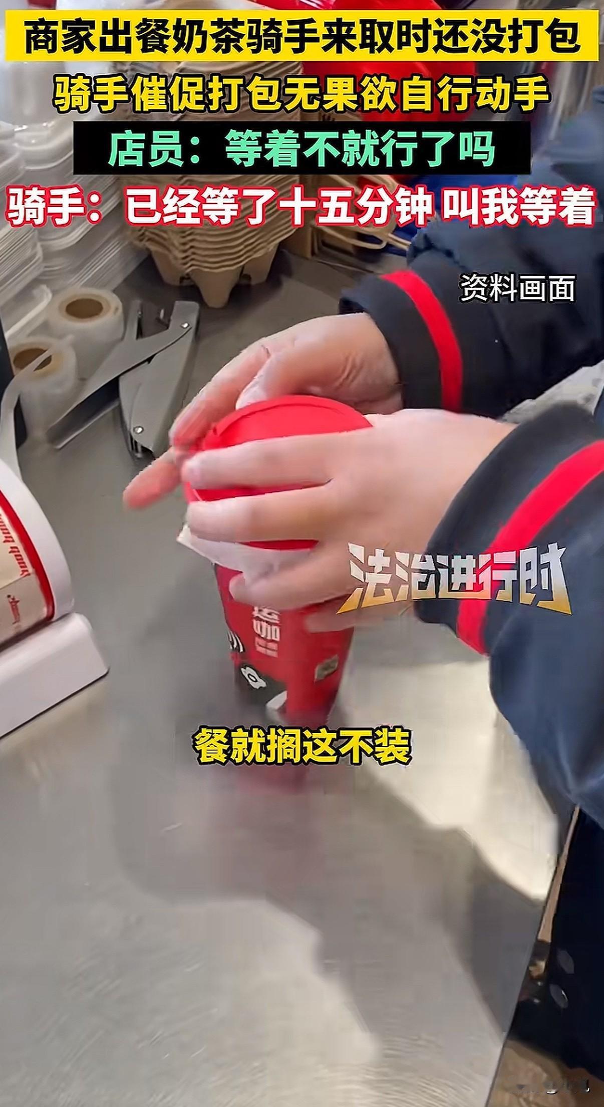 北京一家奶茶店,店员把做好的饮料往台子上一放,就是不打包。骑手急得火烧眉毛,她冷冰冰甩来一句:“能打包,但偏要晾着你。” 就这一句话,把整个外卖行业的遮羞布,全给扯下来了。 事情发生在12月7号,北京茉莉奶白西三旗万象汇店。骑手到店取餐,几杯饮料明明已经做好了,就晾在操作台上。十分钟过去了,店员跟没看见一样。 骑手忍不住了,问能不能打包。他怕啊,下一单又要超时了,一单罚好几十,这一天可能白干。 店员什么反应呢?不仅不理,骑手说那我自己打包行不行,她一把将饮料抢回去。然后就是那句充满挑衅的话:“罚钱算谁的?”“能打包,但偏要晾着你。” 有骑手拍下了视频。画面里,店员那种无所谓、甚至带着点故意的冷漠,和骑手在旁边干着急的样子,对比太强烈了。网上一下子就炸了,很多人问:都是辛苦赚钱的人,你哪来的优越感? 后来这家店关门停业了。但这件事,绝不只是两个人吵架那么简单。 它像一个口子,让我们看到外卖系统里,商家和骑手是怎么被逼得互相伤害的。 商家也有商家的压力。平台有个规则,出餐太慢,会被降低店铺的曝光率,那就没单子了。为了不被罚,很多店会用一个“神器”:虚假点出餐。 就是餐根本没做好,先在系统里点“已出餐”。这样一来,平台不罚他们了,压力全部转嫁到骑手头上。 骑手接到单,火急火燎跑到店里,结果东西根本没做好,只能干等。时间一分一秒过去,他后面所有订单都可能像多米诺骨牌一样,全部超时。 骑手能申诉吗?能,但很难。他得自己录视频证明是商家出餐慢,费时费力。更怕的是,这次申诉了,下次商家可能直接拉黑他,不给他餐,那他还怎么在这片区域跑? 可要是不申诉,超时罚款就来了。一单可能罚订单价的百分之好几十,还可能影响后续派单的质量。 你看,这就成了一个死循环。平台用算法和规则追着两边跑,商家和骑手为了自保,就只能把对方当成敌人。 店员故意晾着那杯奶茶的时候,她可能也在发泄对系统的怨气,只是矛头对准了眼前更弱势的骑手。骑手崩溃催促的时候,他抗争的也不是这一个店员,而是背后那套让他喘不过气的计时系统。 最后,两个都在底层挣扎的人,却拳脚相向。这才是最让人无力的一幕。 这件事里没有赢家。骑手的时间被耽误,心情被破坏;店员丢了工作,店铺声誉受损;平台看似置身事外,但积累的怨气,终会反噬整个系统。 它让我们看清,当系统只追求效率和数字,而忽视人的处境和尊严时,会发生什么。那些冰冷的规则,如何把人逼到角落,如何让同样辛苦的普通人,彼此竖起高墙。 一句“偏要晾着你”,晾出的是整个行业的疲惫与扭曲。