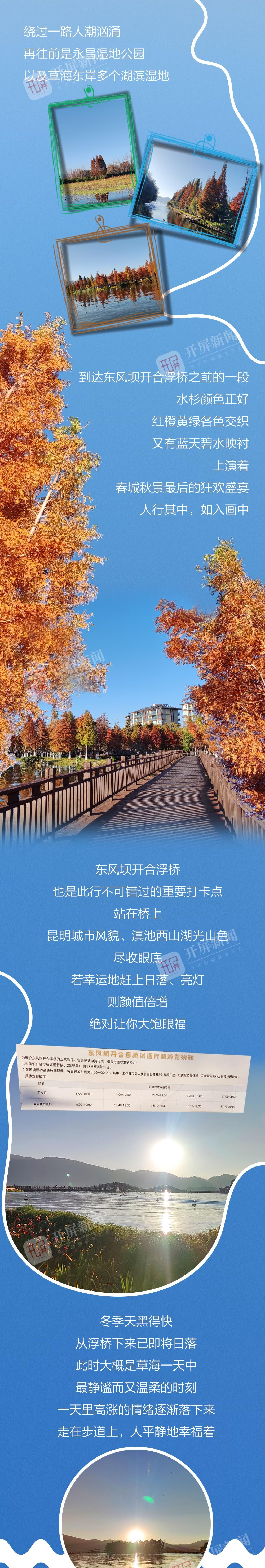 【全网最全最细!1天时间徒步昆明滇池草海】云南我熟 一天时间能做什么?蓝天、阳光、微风、浪花、海鸥、银杏、红枫、水杉、大观楼、环湖步道、海埂大坝、沿湖湿地……开屏小编实地“踩点”,奉上徒步滇池草海全网最全攻略。来一起用一天时间,把美景、美食与春城人文统统拿下!