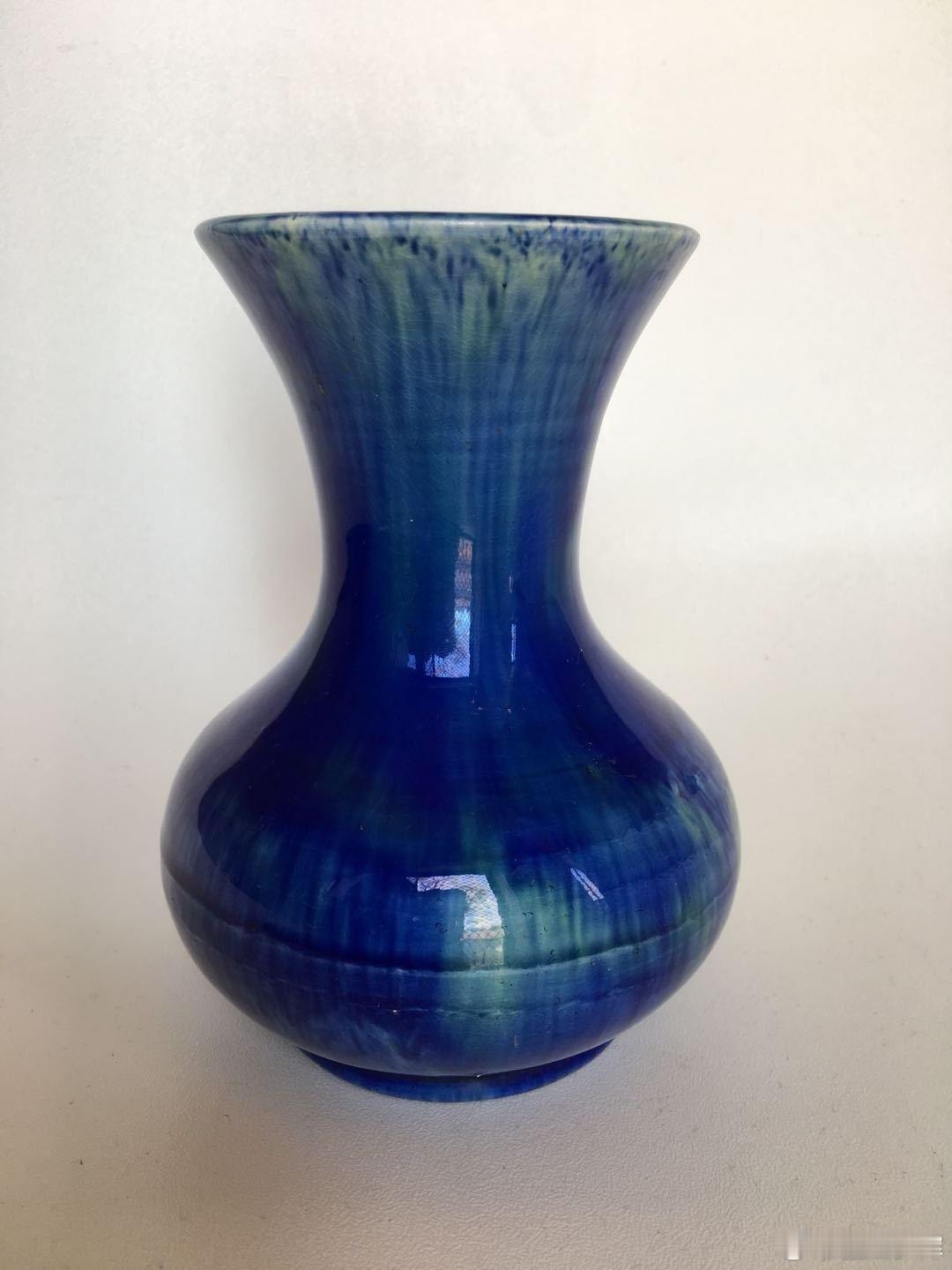 每周鉴赏收藏精品之北宋钧窑蓝釉窑变釉尊 本件蓝釉窑变釉尊,也可以称为鱼篓尊,最初是青铜器中的一个主体部件的器型。 我们之所以把它排在比较靠前的时期,也是因为它使用了白色护胎土,并且白色护胎土参与了窑变,既有窑变的白斑点,也有与蓝釉窑变出的绿色。并且是非常自然流淌的纹路,没有任何人为干预的迹象。因此,我们认为应该是北宋中期的钧窑瓷器。 从釉面光泽看,还是延续了钧窑早期明亮釉面的工艺,施薄釉,虽然流釉自然,但底部没有堆积的积釉,仍然使用支钉烧,说明当时流釉积釉的现象,还没有北宋中晚期那么严重。 尊的腹部有一道环绕一圈的深色纹,其实质就是蚯蚓走泥纹。蚯蚓走泥纹之说,最早出现在清代,原文的意思是,钧窑从上往下的纵向纹叫泪痕,横向的纹路叫蚯蚓走泥纹。而现在已经把所有这种生烧的裂纹,经复烧形成的深色纹路,都叫蚯蚓走泥纹了。 不管怎么说吧,这种痕迹也是北宋钧窑真品的一个依据。 另外两个到代的依据,一个釉面包浆浑厚,釉光莹润,波光粼粼,懂者自懂;另一个就是重量,器身干爽轻巧。这两个特征,是现在仿品很难做准确的。 所以,这是一个到代的北宋钧窑蓝釉窑变釉尊真品。