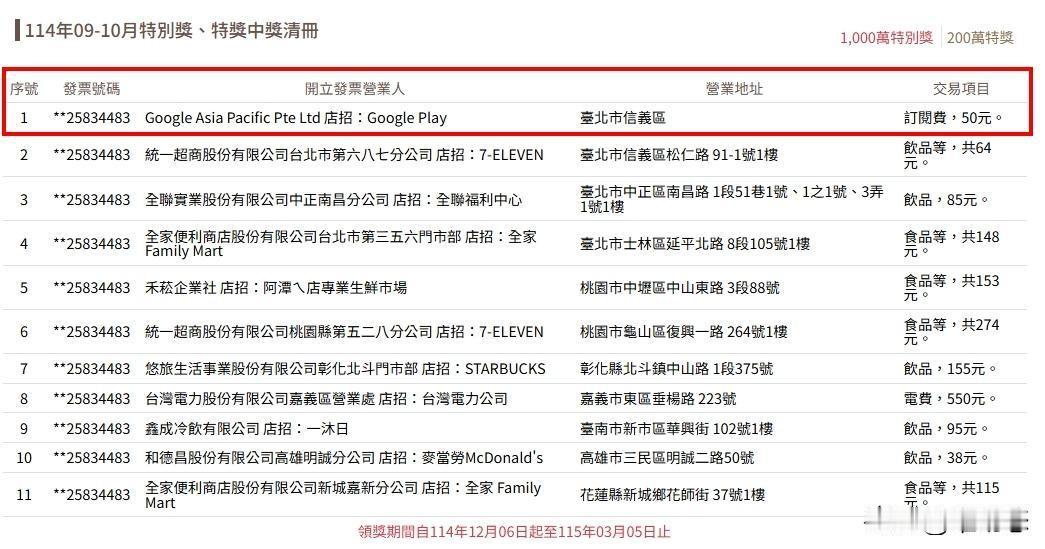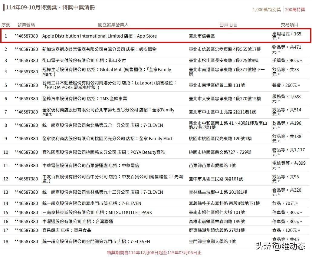 台湾地区2025年9-10月发票开奖!50元中1000万太离谱,这运气真的可遇不可求~ 家人们谁懂啊!台湾地区2025年9-10月统一发票中奖名单一出炉,直接把“小成本博大奖”的惊喜值拉满,29位幸运儿瓜分千万级奖金,看完真的忍不住感叹:运气来了挡都挡不住! 本期1000万特别奖号码是「25834483」,11人成功中奖;200万特奖号码「46587380」,18人抱走大奖。最绝的是两位数字支付用户:Android用户花50元在Google Play订阅服务,就拿下千万大奖;果粉165元在App Store买应用,喜提200万,这哪里是消费,简直是“开盲盒中头奖”! 说实话,这种“花小钱中大奖”的案例真的太让人上头了!平时几块、几十块的消费发票,谁能想到会藏着千万惊喜?但反过来想,这也只能当生活里的小期待,毕竟中奖概率堪比“天上掉馅饼”,没必要为了碰运气刻意消费。不过看着这些幸运儿的经历,还是会忍不住替他们开心,这种不期而遇的好运,真的能给平淡生活添不少光彩~ 评论区聊聊你见过最离谱的中奖经历,有没有人也曾花小钱中过意外惊喜呀?