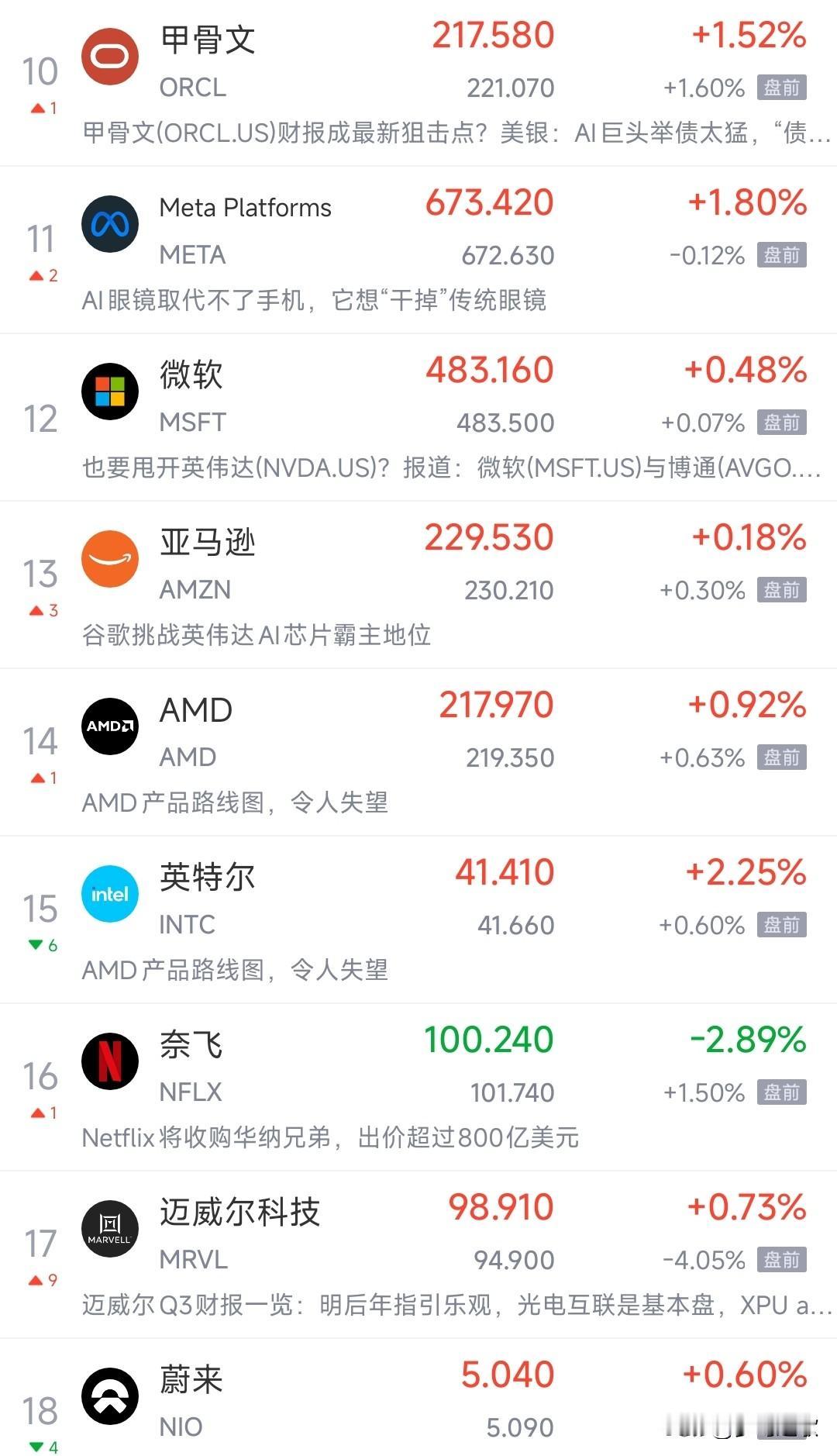 美股今天晚上要难受了,A股也会受到影响 今天美股大型科技股非常难受,尤其是芯片厂商,因为美国预推出法案:将全面对华仅售高端芯片。像英伟达这种大厂每年在华销售额都有200亿美元,这将严重损害芯片厂商的业绩。 存储芯片还是一如既往的稳,因为世界都缺,而且缺口还在扩大,所以存储厂商都在上涨。 美股盘前纳斯达克指数期货上涨0.22%,道琼斯指数期货平盘,主要还是AI泡沫化的论调已经消化的差不多了。 人工智能大厂微软盘前涨0.05%,甲骨文盘前涨1.68%,谷歌涨0.04%,就连有利空消息的英伟达都涨了0.30%。 美股科技股的反弹也会传导到A股,A股科技股今天已经大涨,宣告科技股的回归,明天将还有机会。