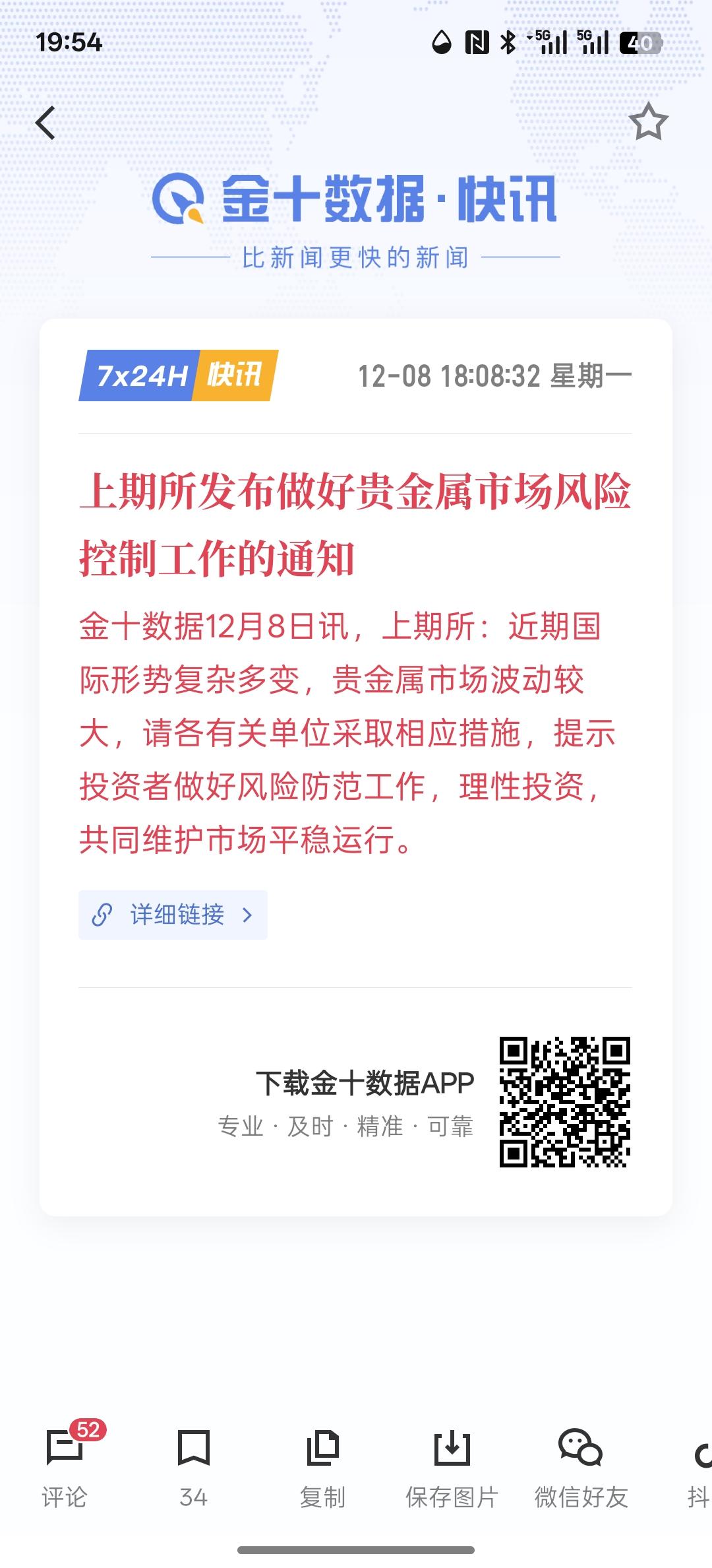 难道是有色金属要出现大幅下跌,上期所发布做好贵金属市场风险控制工作的通知,上一次上海交易所就发表了相关风控提示,就黄金冲到高位的时候,发表了风控提示,白银的价格同样冲到了历史高位59美元盎司,翻了一倍,涨了90%到100%。随着美联储降息,这些有色金属估计冲高就回落了!应该有风险防范意识!金属的波动相对比较大,一旦超出预期下跌,很多投资者很难承受这种风险!