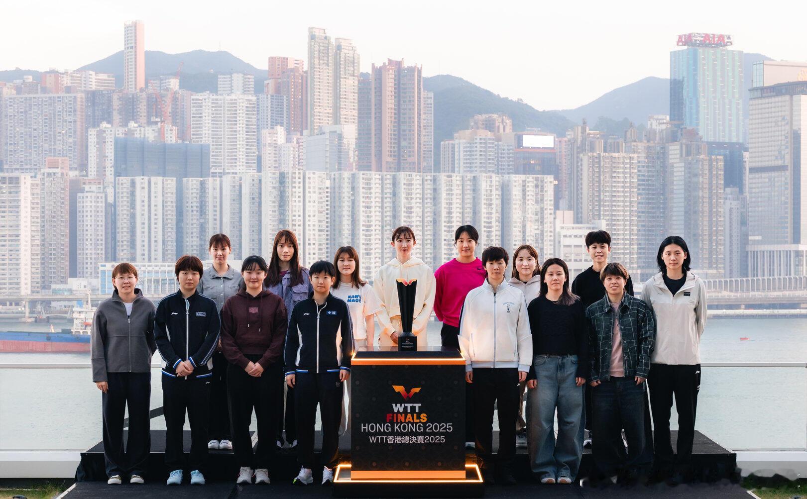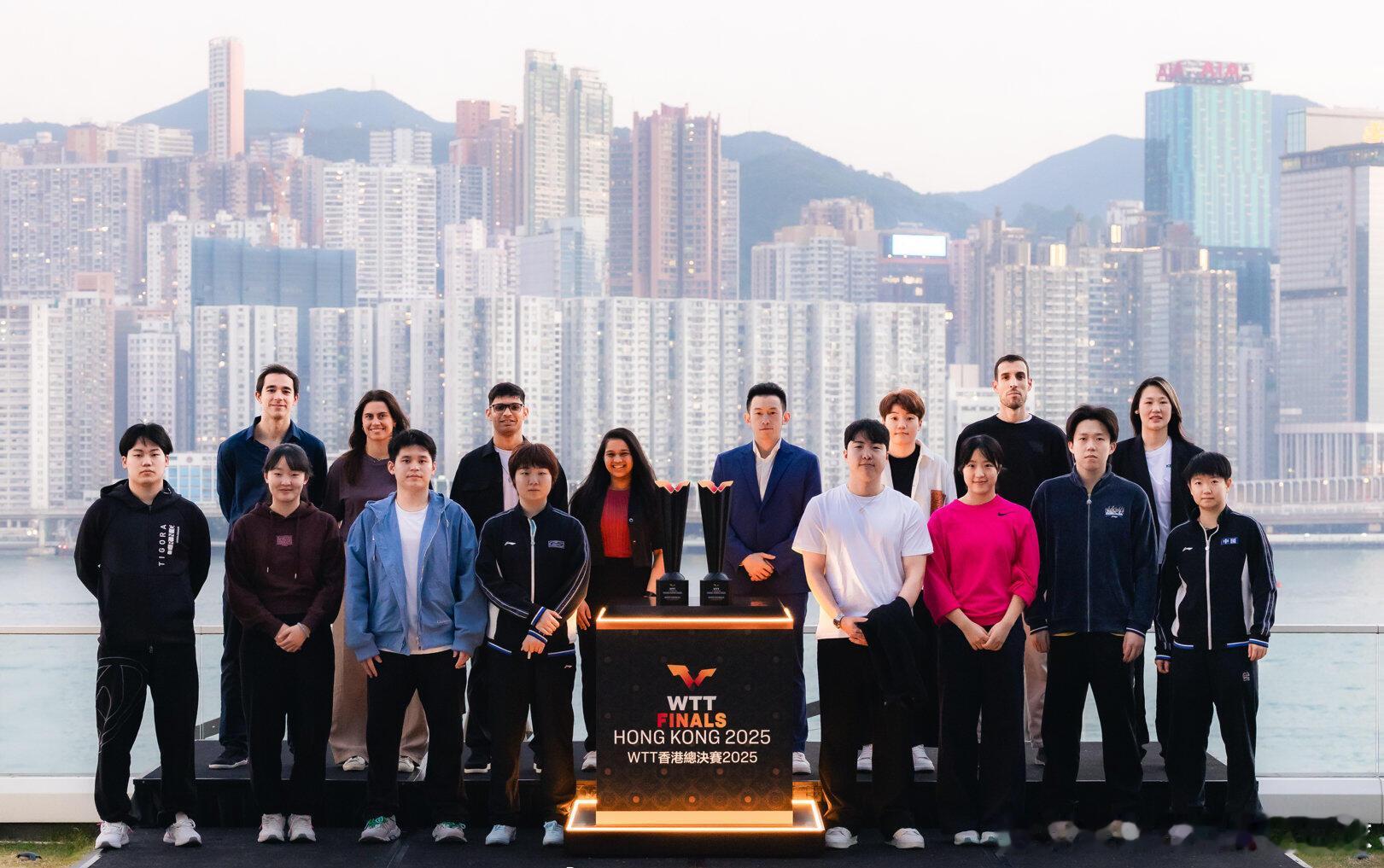 WTT香港总决赛球员合照莎莎楚钦比赛加油棒棒棒!