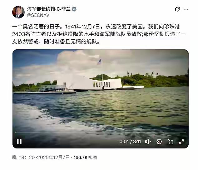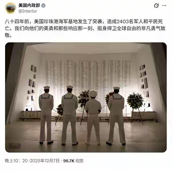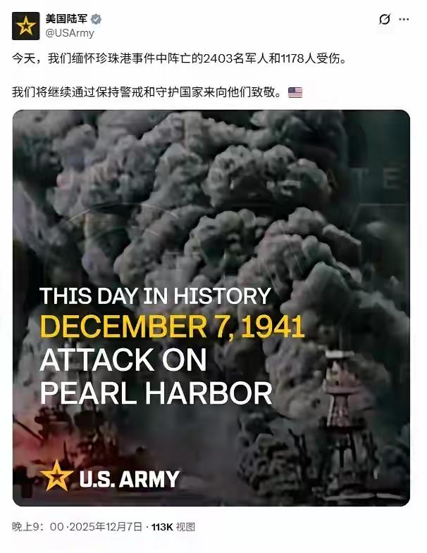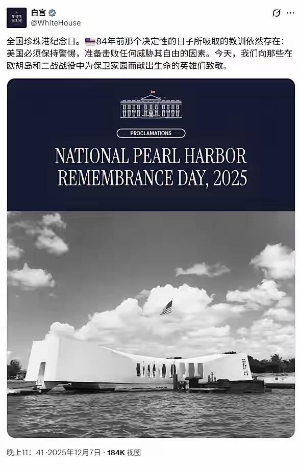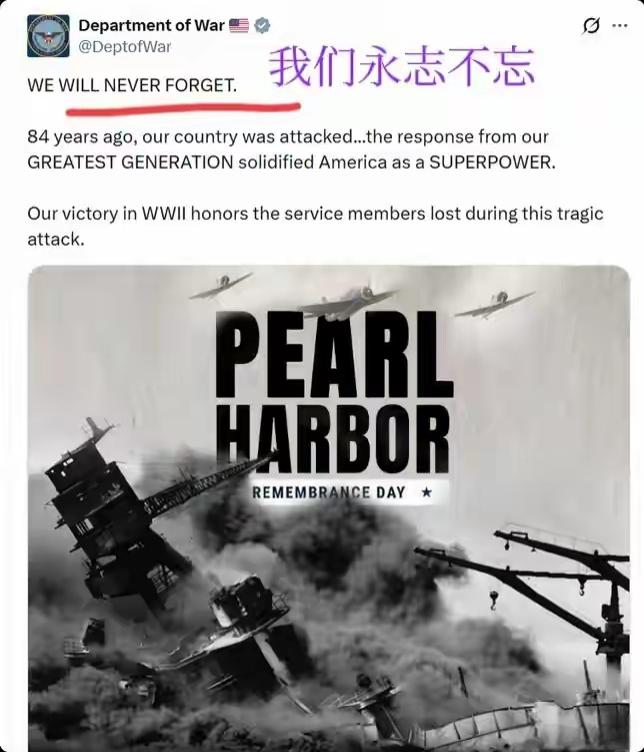 美国对日本的态度发生了转变,美国直接晒出了日本袭击珍珠港事件的照片在纪念,84年前,日本偷袭美国珍珠港造成美国大量的军队人员伤亡,甚至把美国推入了二战!这次美国几个部门集体晒出了二战期间的画面,说到了日本帝国主义对美国珍珠港的袭击,一直在敲打日本,美国没有忘记日本当年对珍珠港事件的偷袭!最近,日本首相高市早苗却对美国特朗普政府中日争端问题上面保持沉默而感到沮丧,日本的意思就是说美国没有支持日本,支持日本没有明确表达出来!这一次,美国各大部门包括白宫陆战队,美国海军包括战争部都发表了相关二战期间的日本大腿珍珠港的照片,而且说了一些关于当年日本怎样对美军造成伤害的言语!那是一场臭名昭著的一天。 那美国这一次对日本的表现应该是表示不满!至少日本是第一个侵略了美国,而且对美国本土进行了袭击!日本人的基因因子里面,他就有侵略的那种想法与思想,所以日本人不得不防范我们要高度戒备,高度警惕日本军国主义死灰复燃!