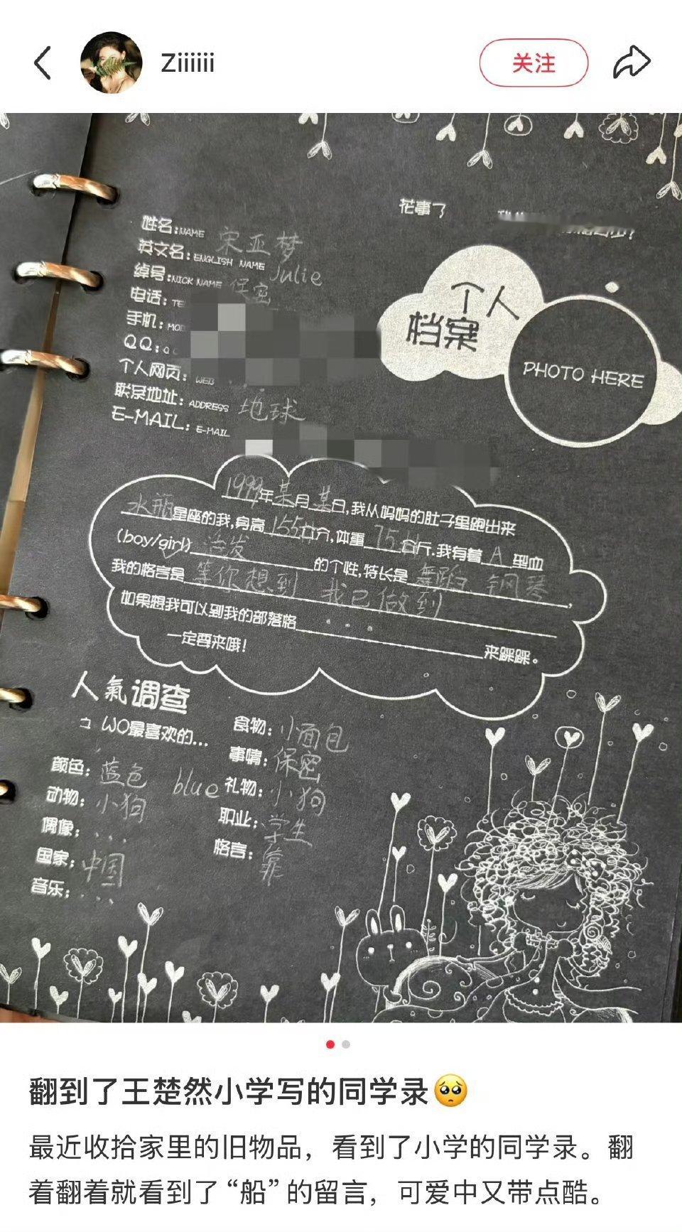 刷到有博主分享王楚然小学写的同学录,从小就是很有主意的大女主性格,小学生🚢就意气风发写了人生格言:“等你想到 我已做到”我们王楚然打小就是搞笑女来的,喊着豪言壮语干着怂萌的事王楚然的同学录王楚然的人生格言王楚然小学写的同学录