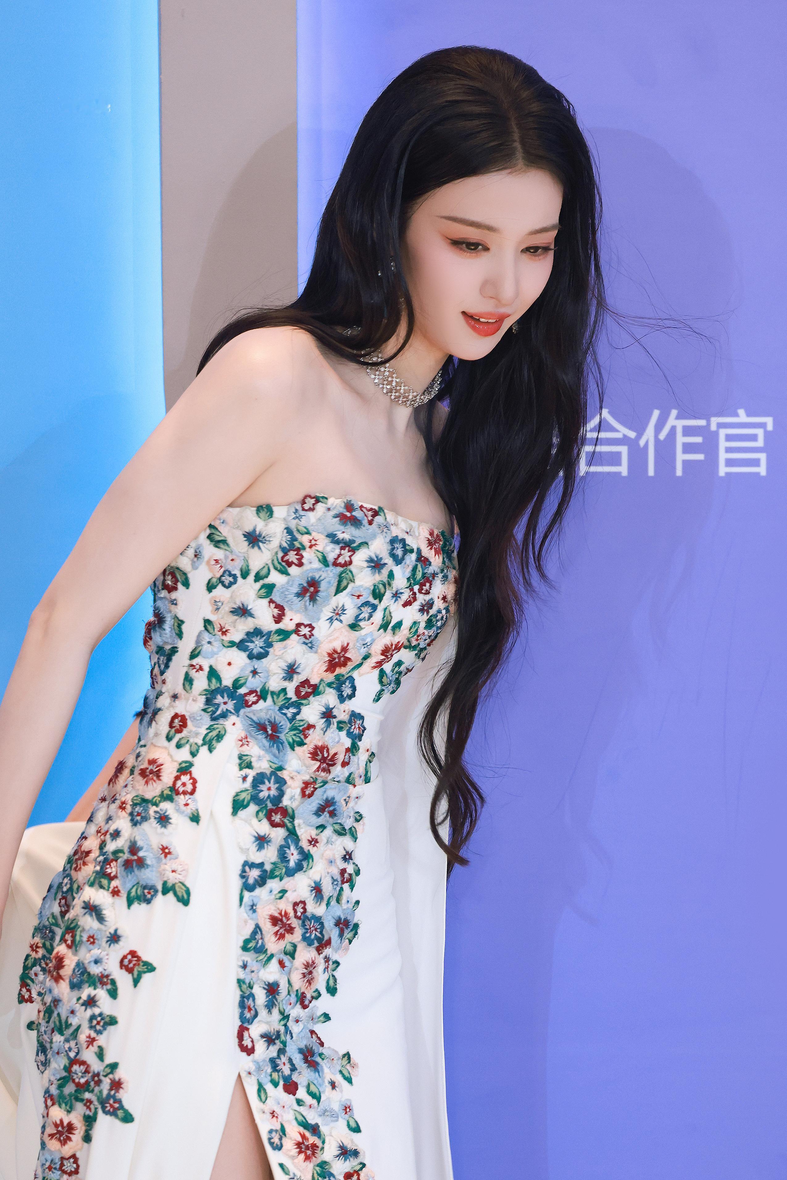 张元英白色一字肩长裙张元英最新物料:Medicube活动全身照合辑