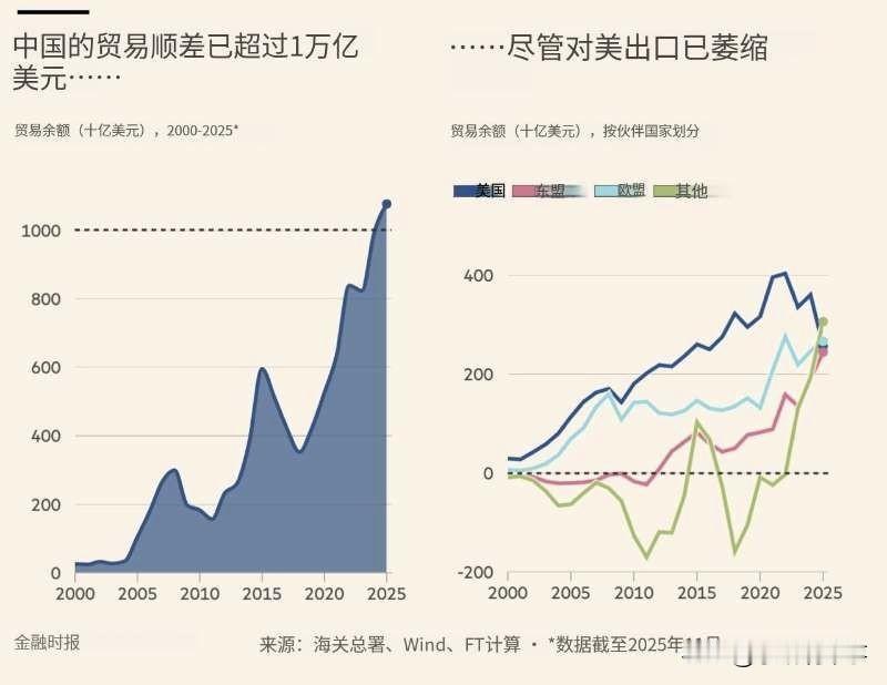 🇨🇳🇺🇸⚡️ — 最新消息:受国内需求疲软,中国的出口已强劲反弹,贸易顺差首次突破1万亿美元大关。 ➡️受特朗普时代关税影响,出口美国的商品量下降了29%,而出口东南亚和欧洲的商品量则大幅增长。 中国出口外贸 中美出口数据 中国出口贸易额 美国对华出口