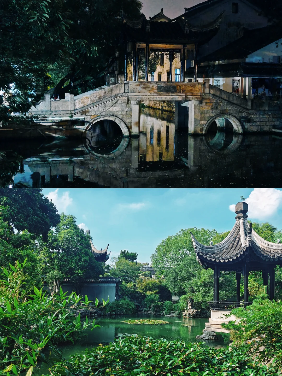 🔸明清鼎盛时期木渎曾拥有30余座园林,如今多数已不存,建筑学家刘敦桢极其推崇的一代名园严家花园,其实也在战争中全毁,如今的建筑是上世纪末重建,“严家花园”匾额是翁同龢所书。