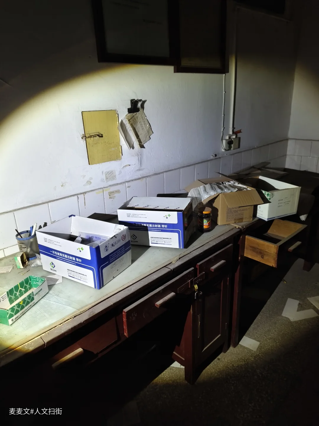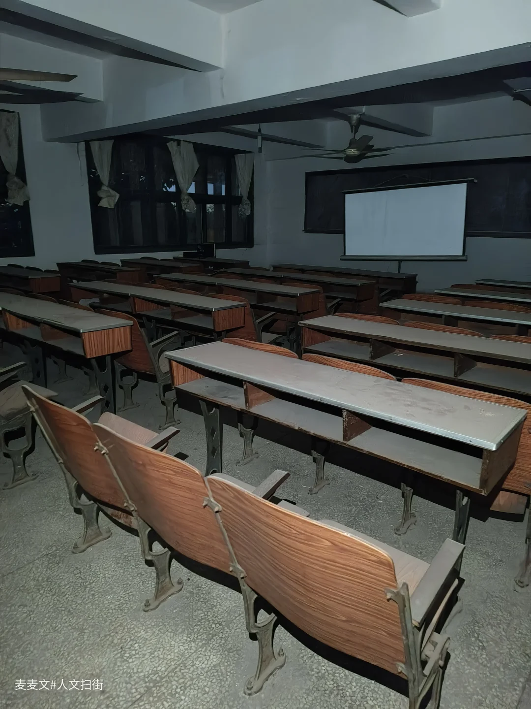 夜晚踏入重庆沙坪坝一处闲置老厂的职工医院,仿佛步入时光褶皱。走廊的绿色墙裙,带着鲜明的年代印记。长椅积着灰尘,静静伫立,曾有多少疲惫身躯在此稍作休憩。墙上宣传栏字迹斑驳,似在诉说卫生所往昔热闹。 推开一扇扇门,“嘎吱”声打破寂静。培训室里,投影幕布前摆满了桌椅,整整齐齐。诊室里,旧桌椅、脱落的墙皮,满是岁月痕迹。那些关于病痛与治愈的故事,仿佛还在空气里回荡。夜探于,在寂静中与旧时光对视,别有一番滋味。