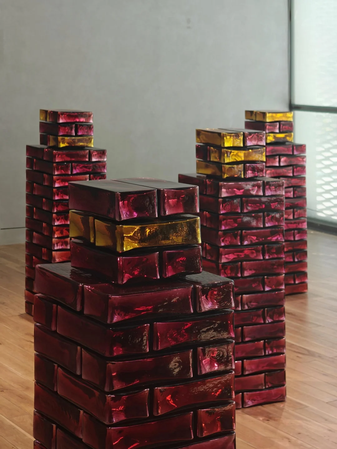 🧱玻璃材质,堆叠生成涟漪般光效,散发幽深神秘气息,似数字虚拟世界物体现身现实。