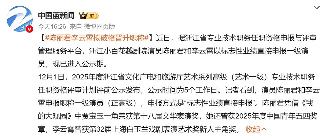 陈丽君李云霄马上就要成为国家一级演员了33岁和32岁的国家一级演员,好厉害