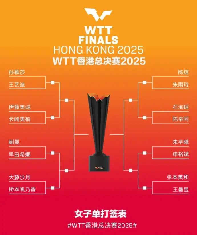 【香港总决赛女单有2位种子选手,分别是孙颖莎和王曼昱】根据赛事规则,女单比赛由16位选手进行单败淘汰赛,孙颖莎和王曼昱作为前两号种子,分别镇守上半区和下半区。WTT香港总决赛2025 抽签嘉宾王楚钦和西蒙·高茨抽取女单对阵签表。女单比赛中,头号种子孙颖莎坐镇1/4区,将在八强战中迎战王艺迪。2号种子王曼昱位于4/4区,首轮对手是张本美和。 首轮对阵情况比较富有戏剧性,内战比较多。除了王曼昱,蒯曼避开了队友,将对阵早田希娜。朱芊曦则比较幸运,队友申裕斌很可能伤退,或不战而胜直接进入下一轮。 冬日生活打卡季