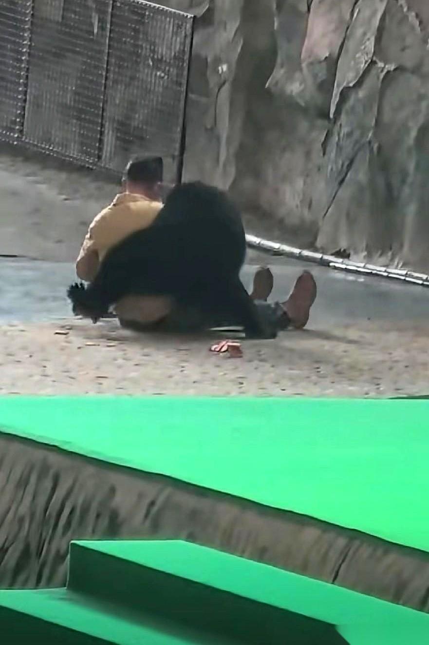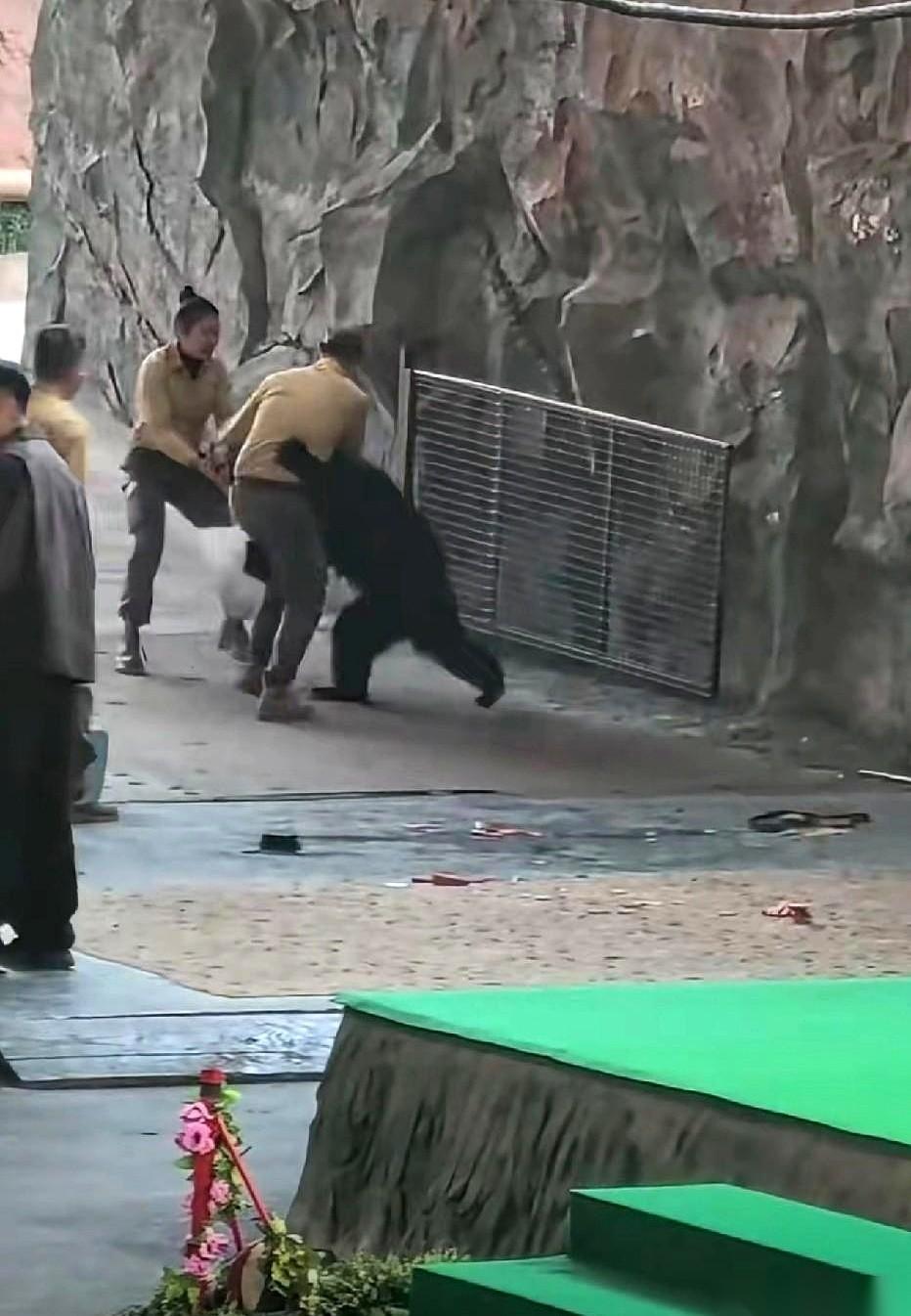 那只熊,前一秒还在鞠躬作揖讨人笑,后一秒就把养它的人按在地上撕咬。 视频里,工作