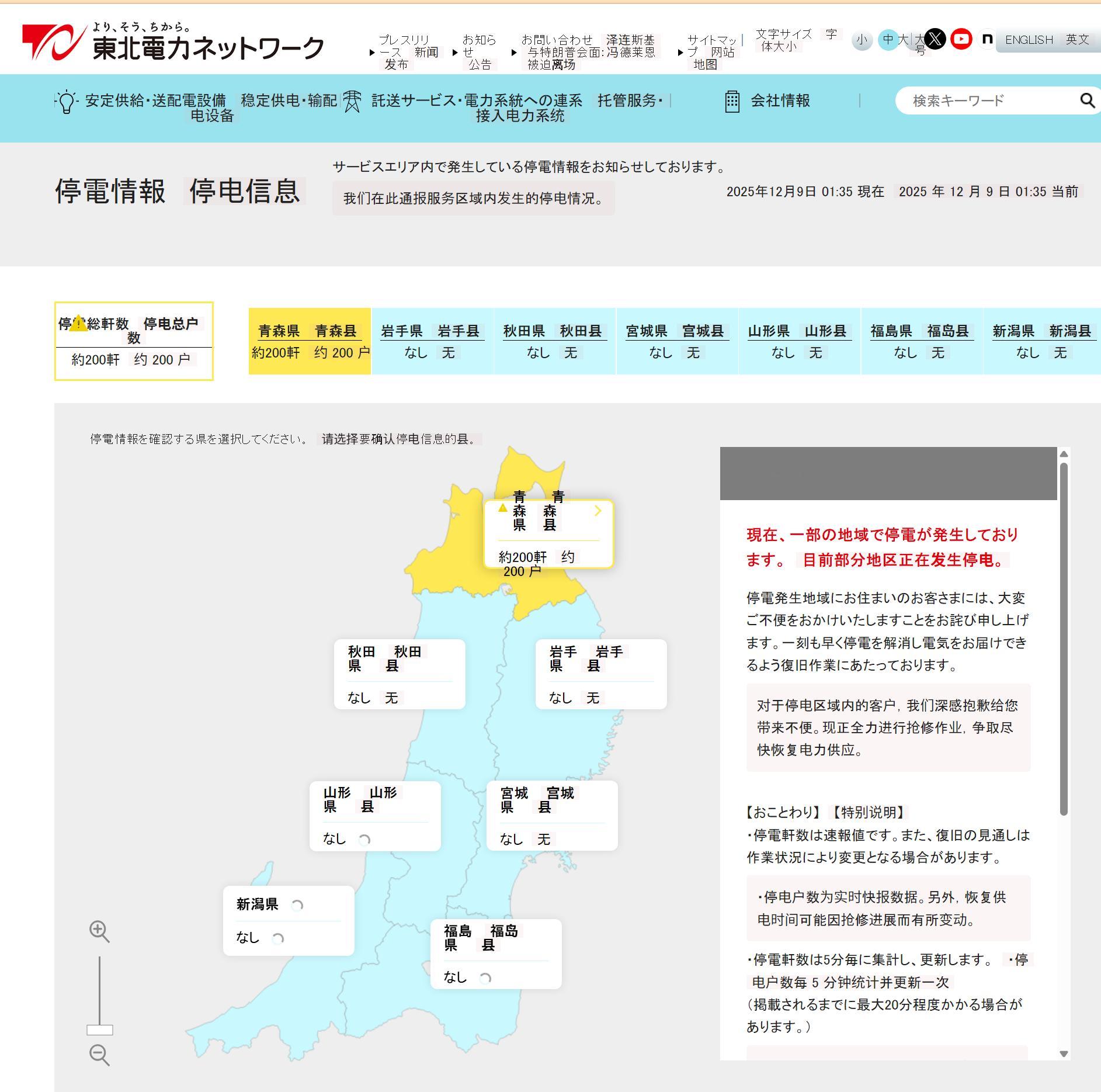 🔻日本东北电力表示:“12 月 8 日晚间 11 点 15 分左右发生的地震导致停电,截至今日凌晨 0 点 30 分,青森县约有 500 户、岩手县约有 300 户仍处于停电状态。对于停电地区民众造成的不便,我们深表歉意。”🔻不是吧,深度50km,6强,地面晃动并不是特别大哎?日本近海7.5级强震日本地震热点现场海外新鲜事