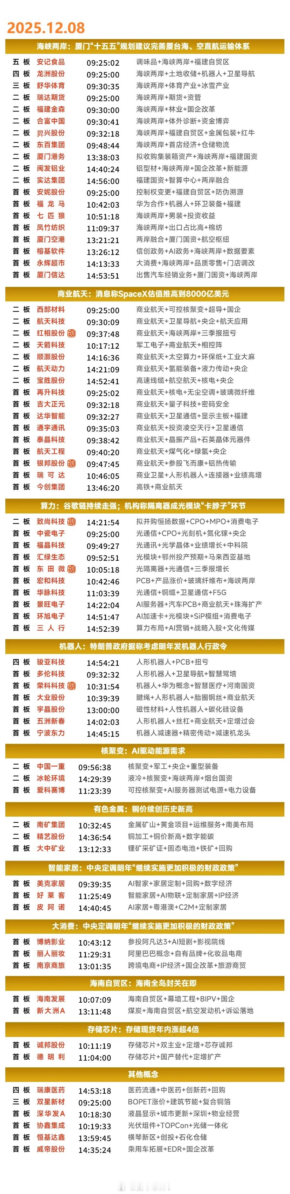 12月8日涨停复盘 | 指数放量上涨,光通信再度大涨,福建自贸、航天保持活跃