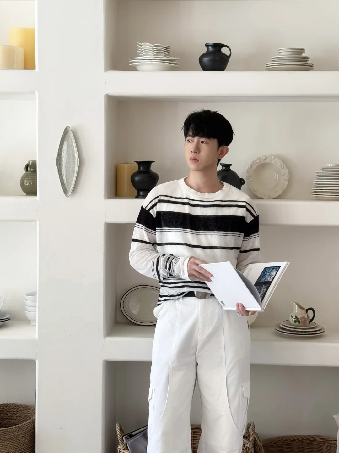 📝 今天的慵懒高级感来自条纹和裤子 简约随性帅气冷淡风穿搭