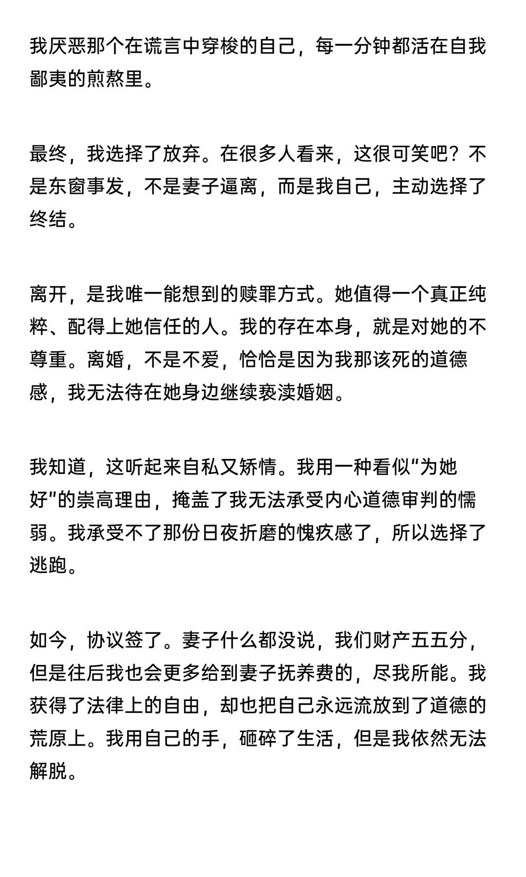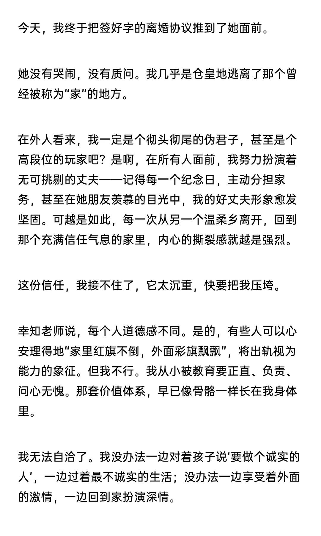 有道德的出轨男后续。今天,我终于把签好字的离婚协议推到了她面前。