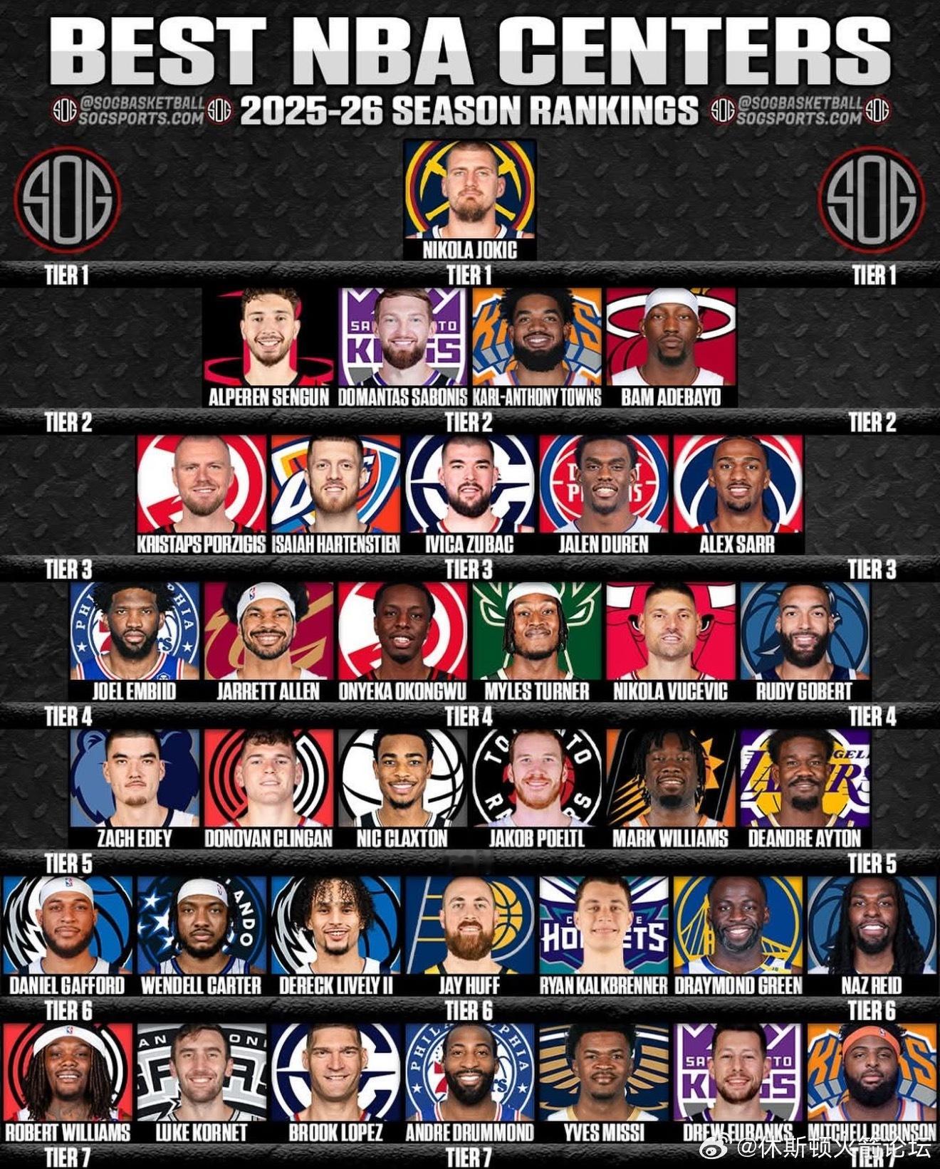 美媒将联盟中锋划分为七档,你认可吗?新赛季篮不住