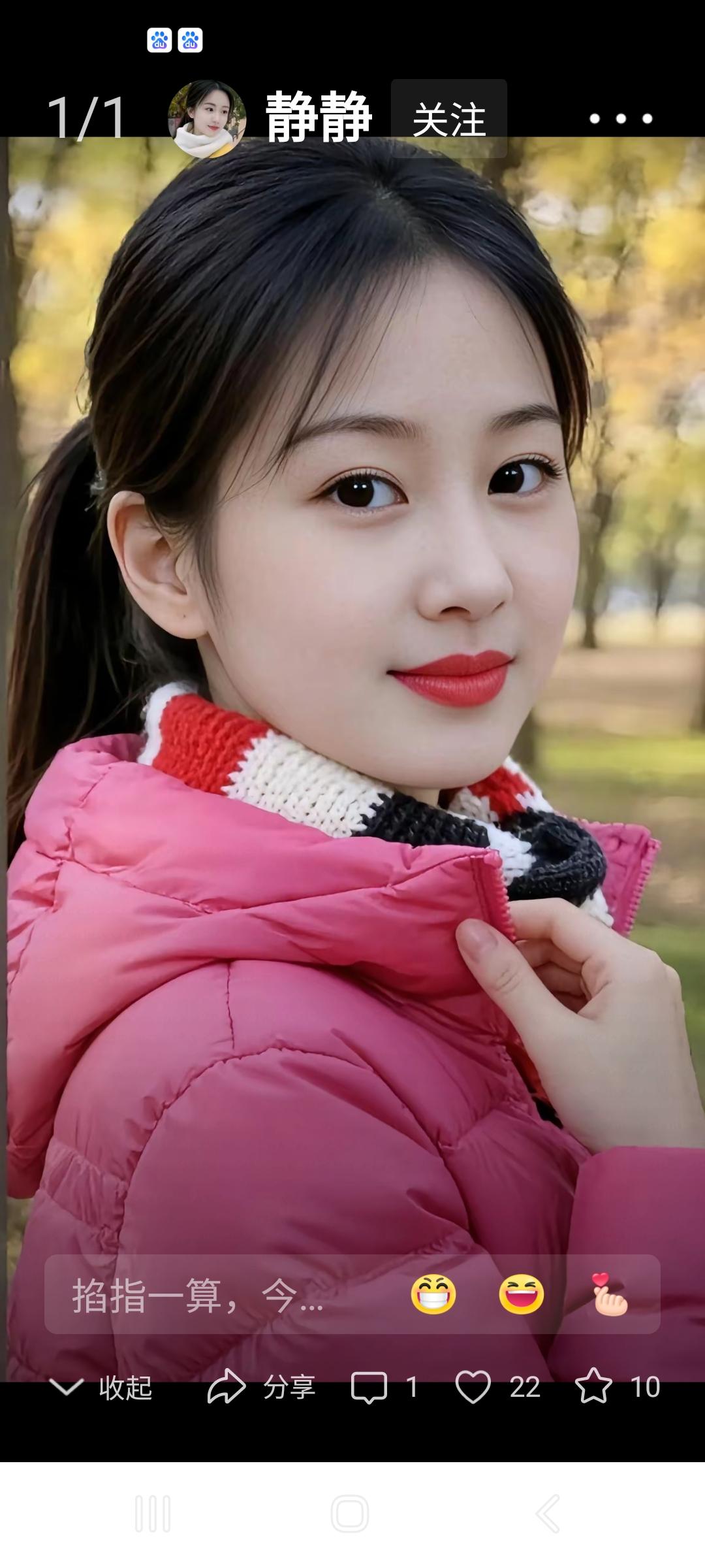 秋日暖阳下,粉衣少女微笑如花
