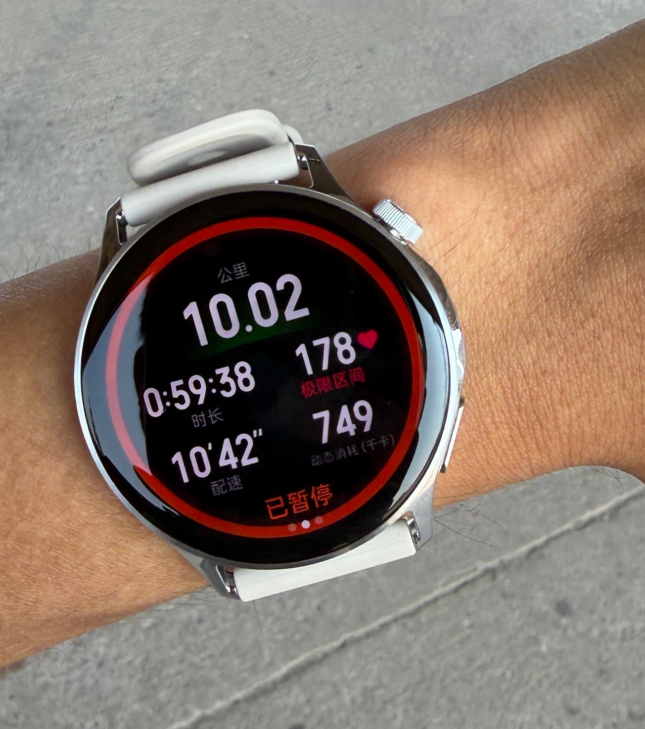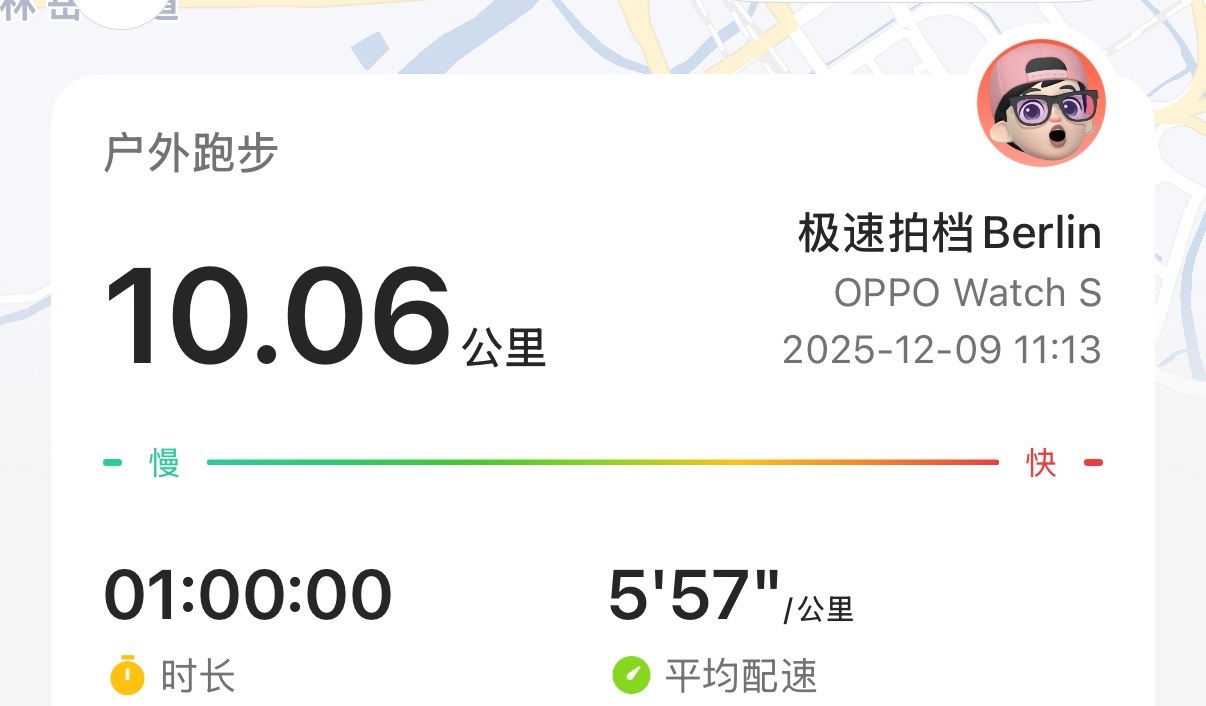 个人最好成绩,10公里终于进一个小时了!忽略一下我的心率,最后1公里全力开始冲刺了,这成绩不稳定,但是很开心