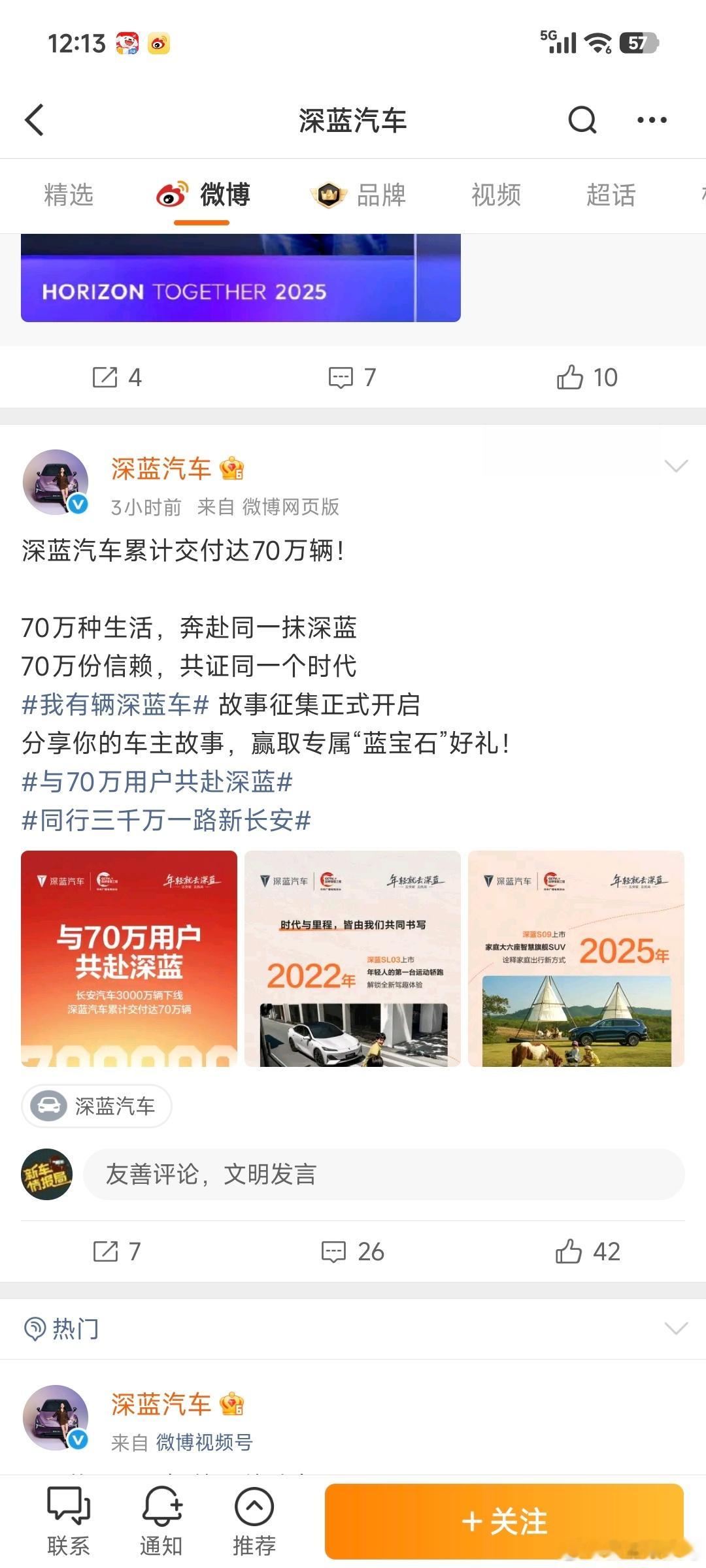 深蓝汽车累计交付达到70万辆新车情报局 刚刚官方宣布,深蓝累计交付已经达 70 万辆,对于针对年轻消费者的新能源品牌。另外,长安汽车也迎来了 3000 万辆车的下线,创造新的里程碑!