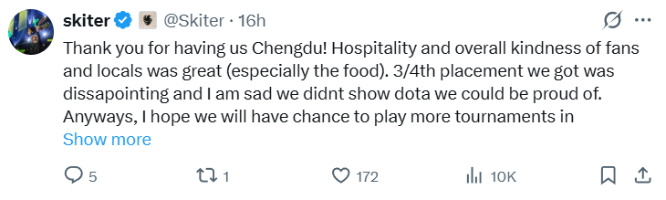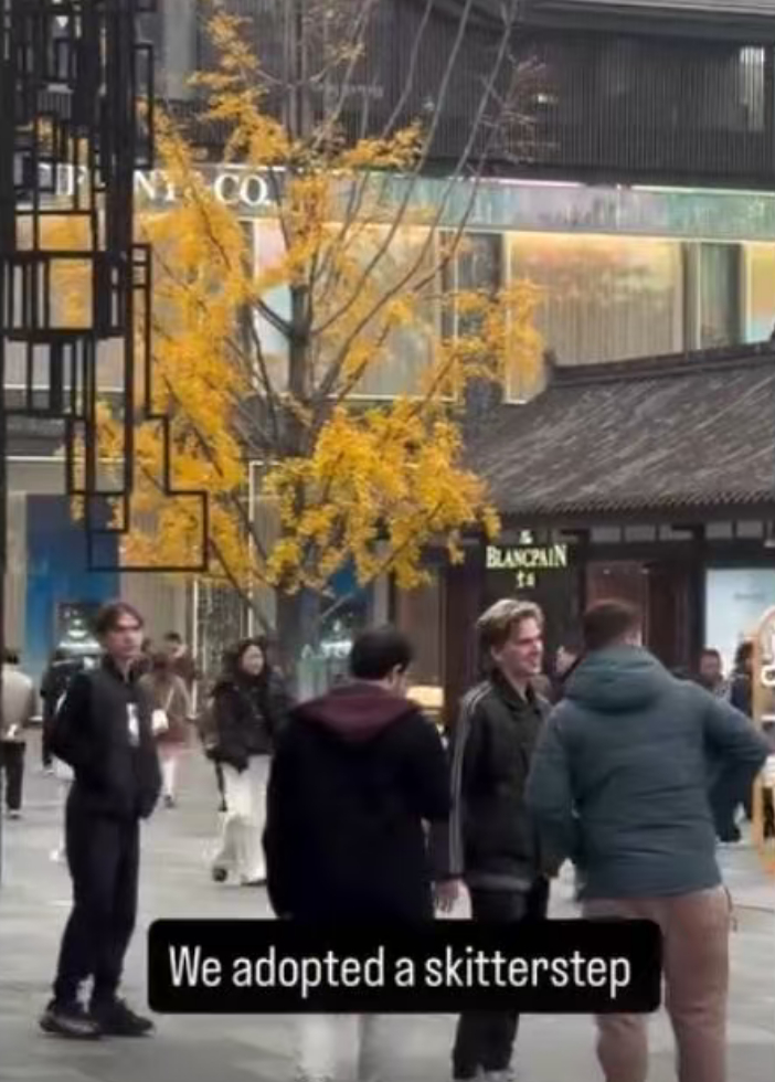 石头人全队去太古里逛街购物偶遇了Skiter,Skiter在自己的Instagram上发了好多在中国的照片,他表示这次成都行给自己留下了非常美好的回忆,成都粉丝很热情、当地美食也很好吃,希望下次还能有机会来中国比赛