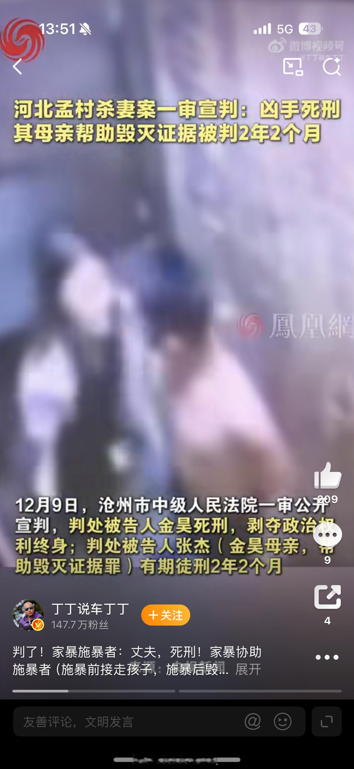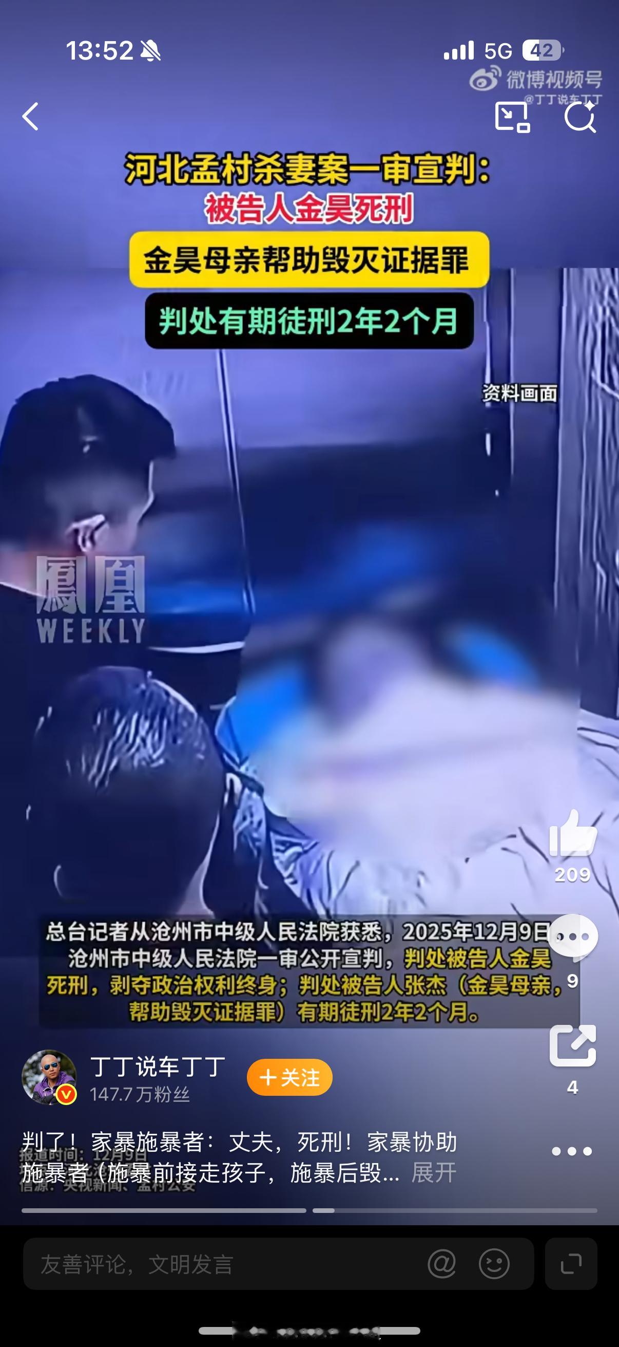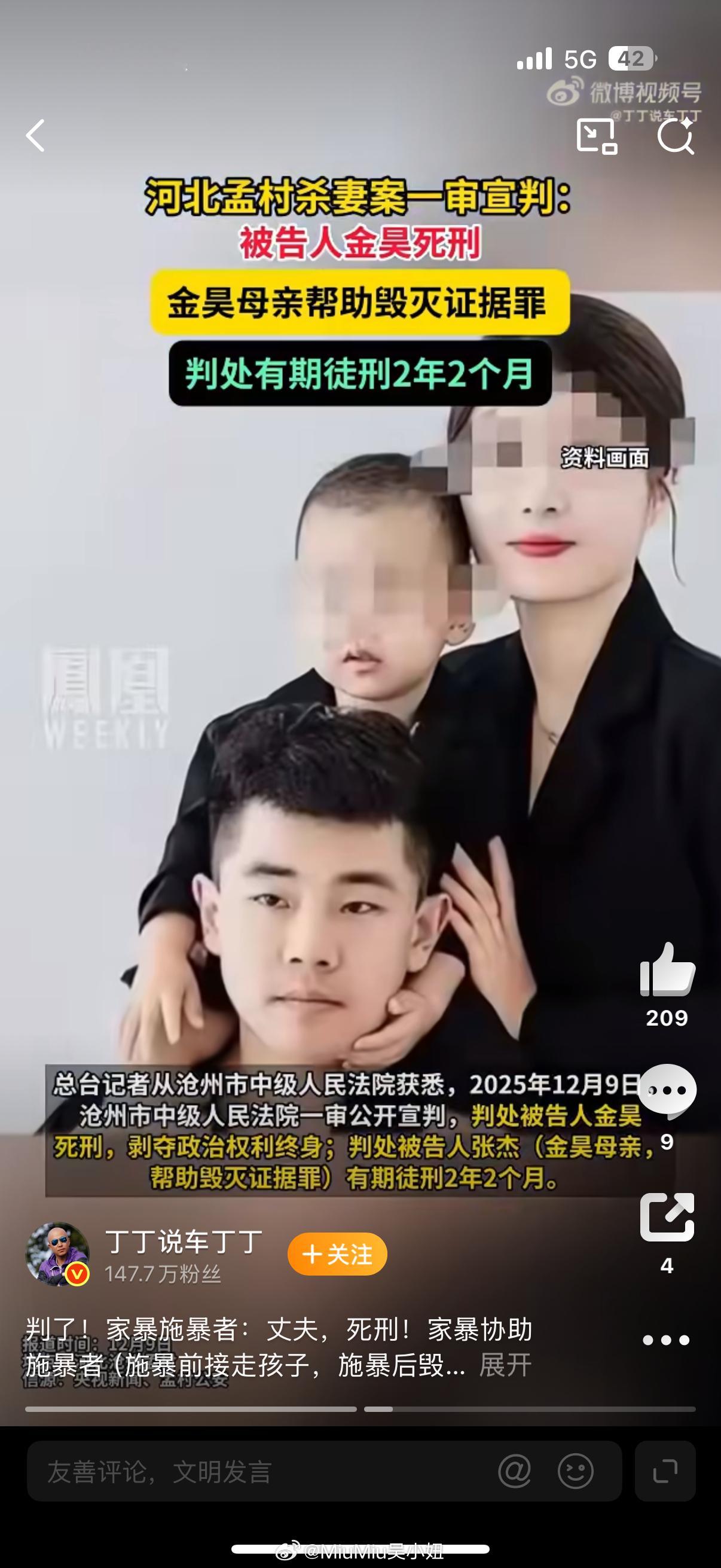 金昊被判处死刑河北沧州杀妻案一审宣判 大快人心!!!这次判决算快的~就是那个老婆带孩子一起下楼接他,后一秒就把老婆打死了的鬼!😈电梯监控能看到他老婆活着进电梯,躺着出小区的那个案件!只差最后一步!希望孩子赶紧判给姥姥姥爷抚养!!别再给这群恶魔家族了!恶魔婆婆还帮着儿子毁灭证据真他娘的畜生!