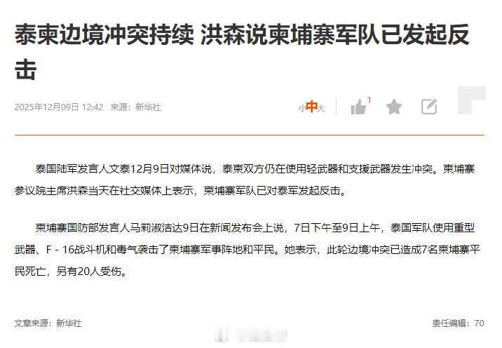 泰柬冲突 柬方说开始反击了,那这次冲突看样子是失控了,又要进入战争状态了。