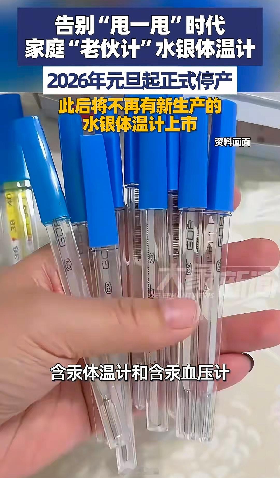 水银体温计血压计明年起禁产陪伴几代人的“国民体温计”要退场!2026年1月1日起,我国将全面禁止生产含汞体温计和含汞血压计,这一政策源于《关于汞的水俣公约》的履约承诺,标志着家用医疗设备正式迈入“无汞时代”,引发全网热议。很多人不知道,这支看似普通的玻璃体温计,实则是藏在医药箱里的“隐形杀手”。一支水银体温计含汞约1克,一旦摔碎,汞会在常温下快速挥发,15平方米的密闭房间汞浓度会瞬间超标近百倍,通风一个月才能恢复安全水平。汞作为剧毒重金属,吸入蒸气会损害神经、消化和免疫系统,对孕妇、婴幼儿的危害更是不可逆,每年医院都会接诊因体温计破碎导致的汞中毒案例,尤其儿童意外接触频发。更可怕的是,1克汞就能污染10万平方米湖泊,让鱼类无法安全食用,环境危害难以逆转 。此次禁产并非突然之举。2017年《关于汞的水俣公约》对我国生效,明确了2026年淘汰含汞医疗设备的时间表,国家药监局也提前5年发文细化要求,给企业留足转型时间。但消息一出,网友态度依然两极分化:中老年人吐槽“电子的不准”,无锡多家药店数据显示,水银体温计销量占比仍高达90%,不少老人为囤货跑遍多家药店;而宝妈和环保人士纷纷支持,直言“早就该禁了,孩子摔碎一次吓得半夜没睡”。其实,替代产品的技术早已成熟。目前主流的电子体温计、耳温枪、额温枪各有优势:电子体温计量精度达±0.1℃,价格10-50元性价比超高,适合全家使用;耳温枪两三秒出结果,接近核心体温,特别适配婴幼儿;额温枪无需接触,1秒测温,适合快速筛查。而且随着技术普及,电子体温计生产成本持续下降,2025年单支成本已降至8.2元,价格差距逐渐缩小。需要注意的是,禁产≠禁用!家中现存的水银体温计只要完好在有效期内,可继续使用,但建议逐步更换。若不慎摔碎,千万别用扫帚扫或吸尘器吸(会加速汞扩散),正确做法是:开窗通风24小时,戴手套用胶带收集汞珠,装入密封瓶(可加水防挥发),送至社区危险废物收集点,切勿混入生活垃圾。选购替代产品也有门道:必须认准NMPA医疗器械认证和国家标准,避开三无产品;电子体温计需每年校准一次,测腋下要擦干汗水夹紧5-10分钟,避免环境温度影响结果。如今重庆、山东等地医院的无汞体温计替代率已超70%,2025年末将实现全覆盖,家用市场也在加速升级。从1866年首支医用汞体温计发明,到2026年生产线停摆,160年的“测温记忆”即将落幕。这场变革不仅是履约国际承诺,更是健康观念的进步——用0.1℃的精度优势,换取全家安全和环境可持续,这笔账显然很划算。你家还在用水银体温计吗?准备换哪种替代产品?欢迎在评论区留言讨论~