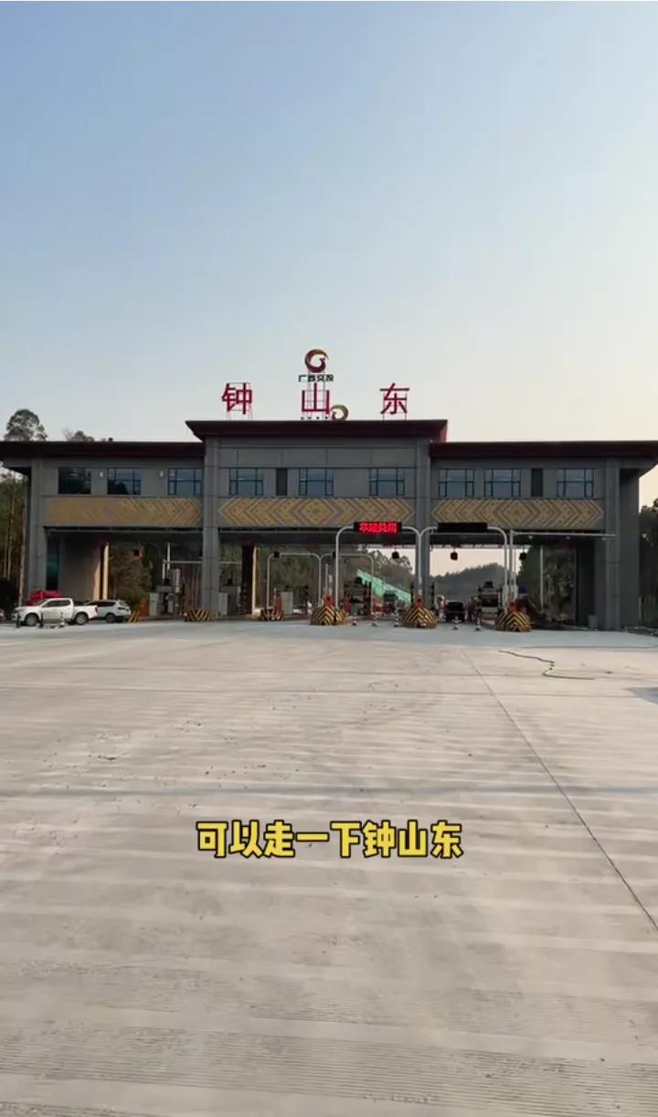 贺州钟山县应该是广西交通最发达的县城,时速300公里的贵广高铁在钟山县设钟山西站,坐高铁来往广州和桂林都非常方便,钟山已建成加正在建设共6条高速,第一为G78汕头至昆明高速过境钟山并在回龙附近设钟山收费站,第二为G65包茂高速过境钟山并在燕塘镇附近设英家收费站,第三为S13富川至钟山高速在钟山县设钟山西收费站(图四),第四为S30贺巴高速过境钟山并在清塘镇南部设清塘收费站,第五为 S1301贺西高速在钟山323国道百村路段设钟山东收费站(图五),第六为桂林至钟山高速正在全速建设中,预计2026年底能够建成通车,除此之外323国道和538国道也过境钟山,钟山县开车北至富川和永州道县、南至梧州和茂名、东至贺州和广州、西至桂林和柳州都有直达高速,一个普通的县城能有如此四通八达的高速确实很不错了。