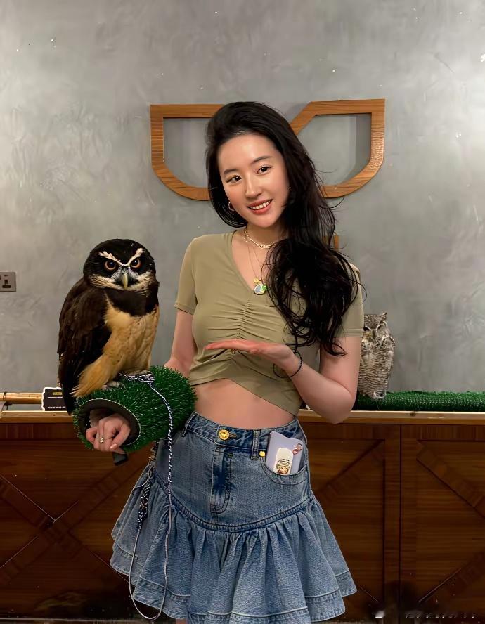 刘亦菲晒出在阿联酋阿布扎比的游客照,她素颜出镜与猫头鹰合影。当天她身穿露肚脐上衣+荷叶边短裙,身形看上去瘦了不少,由内而外透着好状态!