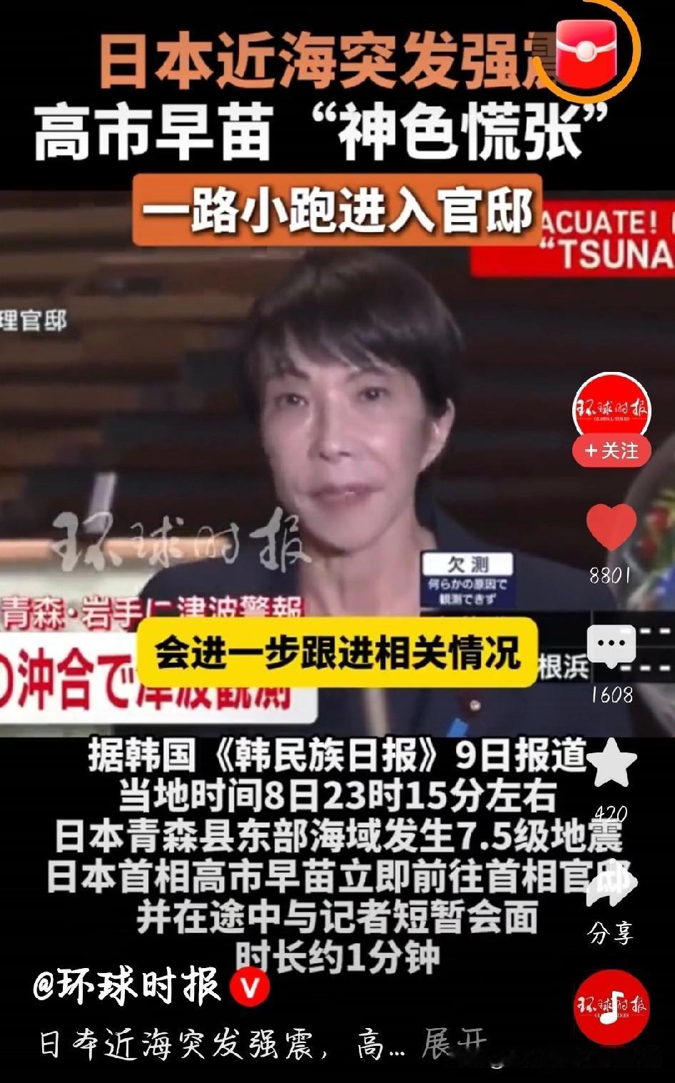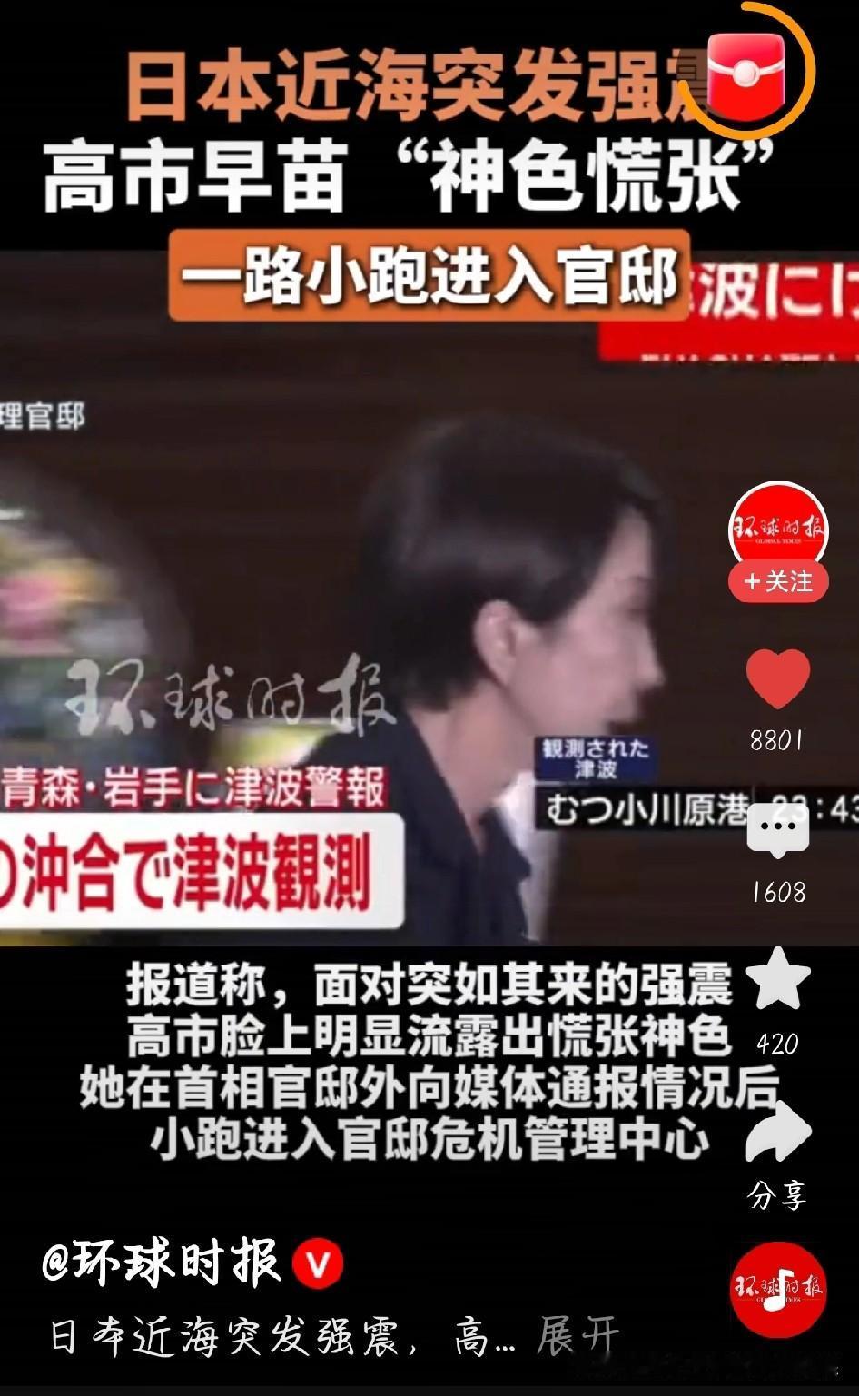 日本深夜突发7.5级强震,大地晃得人站不稳,十万民众裹着睡衣在寒夜中避难,还有地方着火、停电,核废料处理厂都漏水了。 这时候日本首相高市早苗的表现被拍了下来,镜头里她脸色发白、眼神躲闪,一点没有平时的沉稳样。面对记者就说1分钟,话没说清就慌慌张张小跑冲进官邸,网友都看傻了。 一国首相本该是民众的主心骨,可她先慌了神。大家要的不是仓皇的背影,是及时的救援、明确的指引。现在还预警可能有更大地震,这时候领导人的镇定比啥都重要。希望后续救援能跟上,也盼着在日同胞都平平安安。 日本强震 高市神色慌张一路小跑 日本海地震风险 日本大地震 日本地震海啸 高市早苗 灾害应对 图片截图于网络