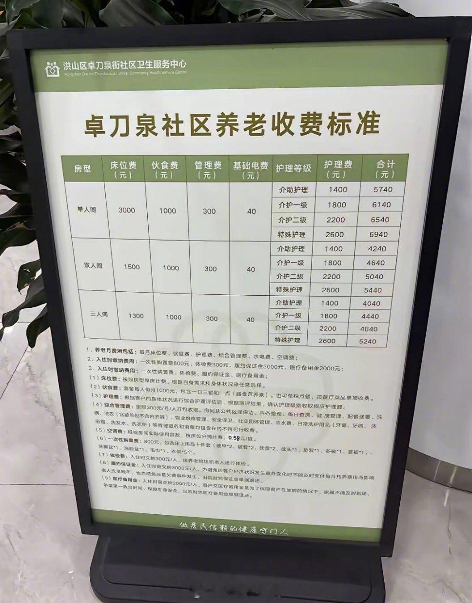 这是一个月的收费标准。这个费用,很多人的退休金都不够交费。