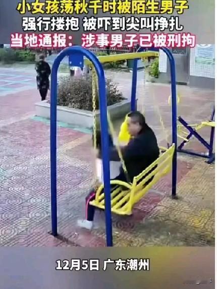 如此畜生,不严厉惩罚真的天理不容。 傍晚的公园本该是孩子撒欢的乐园,却成了44岁男子熊某伸出脏手的“狩猎场”——12月5日广东潮州的秋千旁,他径直冲向正在玩耍的女童,粗暴地将孩子搂入怀中。 女童的尖叫刺破了暮色,同伴的拍打没能立刻逼退他,直到周围群众怒吼着围上来,这双肮脏的手才肯松开。 这哪里是“一时糊涂”?是光天化日下对孩童的公然冒犯,是对法律和良知的彻底践踏。 当他把魔爪伸向毫无反抗能力的孩子时,就该知道:猥亵儿童从来不是“轻罪”,在公共场所当众作案更是法律明确的加重情节——《刑法》第237条早已划下红线,只要对不满14岁的孩子实施猥亵,无论是否暴力、孩子是否反抗,都要面临至少5年有期徒刑;而像熊某这样在众目睽睽下作恶,刑期只会更重。 我们愤怒,是因为这不是“抱一下”那么简单——孩子吓得脸白的瞬间、拼命挣扎的肢体,是刻进童年的阴影;我们咬牙,是因为总有人把恶意包装成“喜欢孩子”,把罪恶轻描淡写成“没分寸”。幸好法律没有纵容:熊某已被刑拘,等待他的必然是锒铛入狱的结局;幸好有路人的怒吼、同伴的拍打,让孩子没被更深地伤害。 但愤怒之后更该清醒:公园里的监控能补装,巡逻能加密,可孩子的安全感,需要每一双眼睛共同守护——下一次听到孩子的哭喊,请别犹豫上前;下一次看见异样的触碰,请别沉默呵斥。 对伤害孩子的畜生,唯有法律的重锤、社会的零容忍,才能守住他们的秋千和童年。