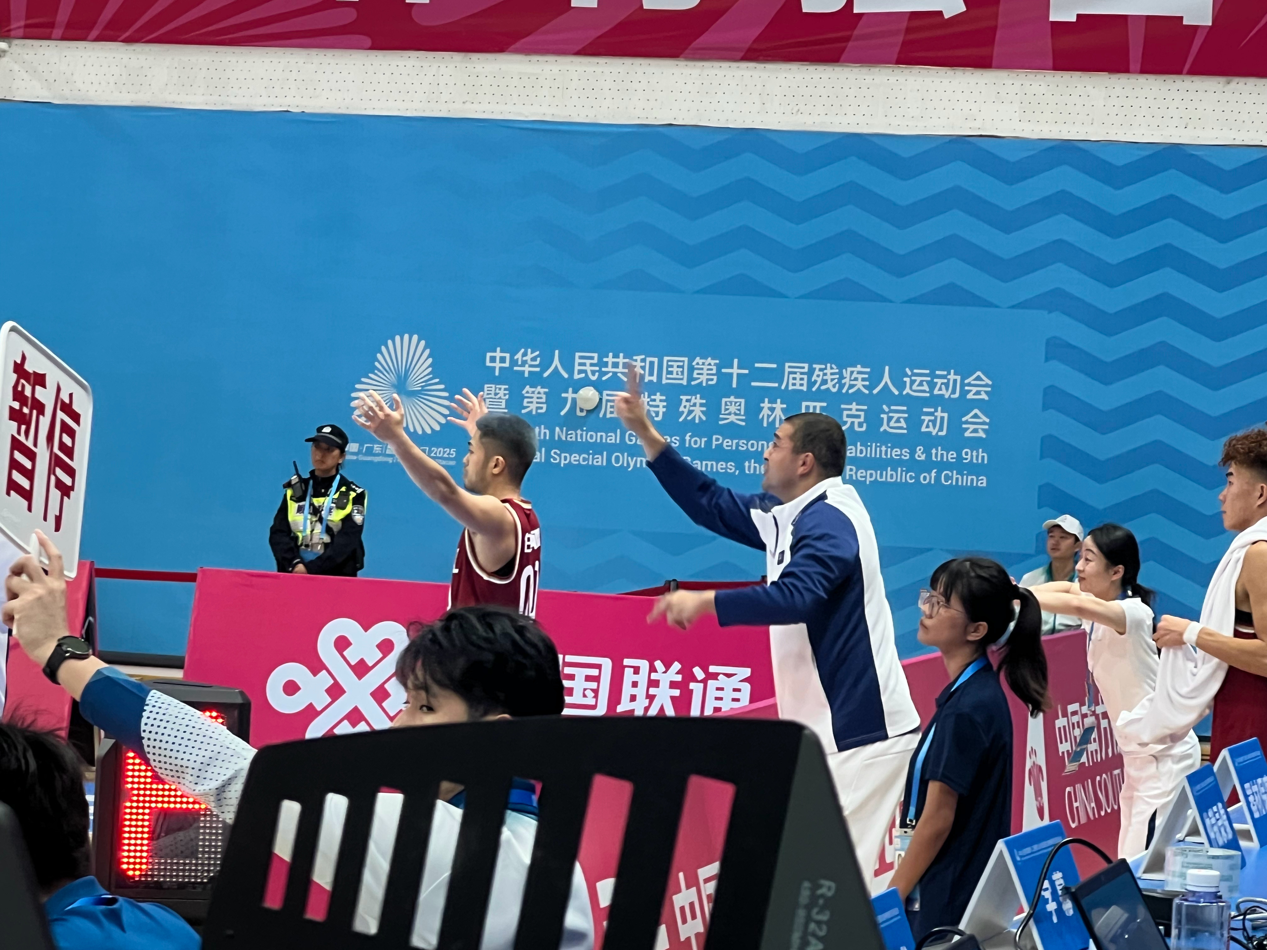执教常规球队和聋人球队还是有挺多不同的,喊叫没用,如何高效率地用手势表达意思才是最重要的,西热力江也是非常卖力啊!残特奥会金秋观赛季
