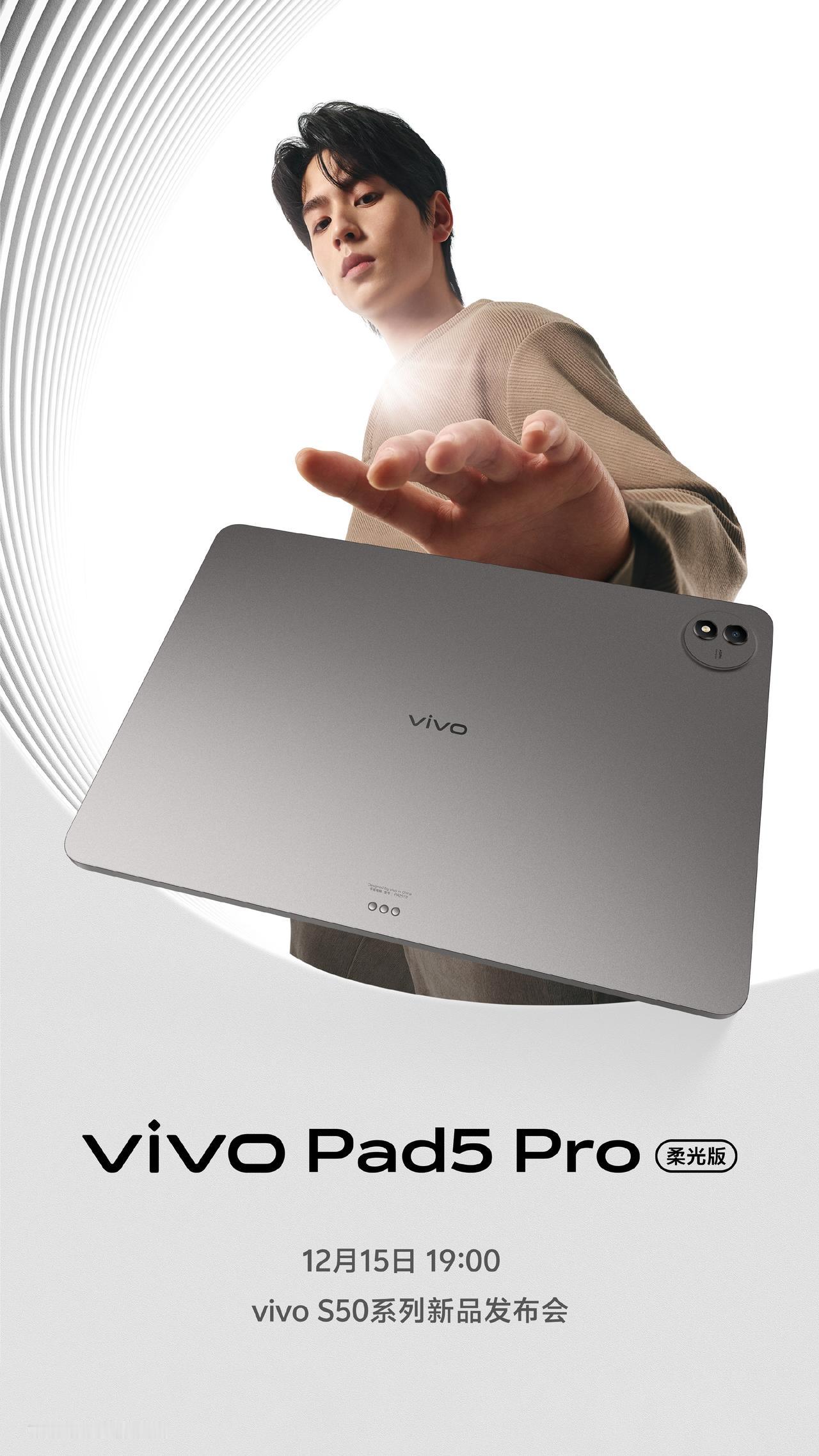 【vivo Pad5 Pro柔光版12月15日发布】今天,vivo Pad5 Pro柔光版正式官宣,将于12月15日在S50系列的发布会上正式登场。官方还公布了主要亮点:13英寸3.1K超清护眼柔光屏,搭配天玑9400强劲性能、PC级WPS高效办公。整体来看,新机与此前vivo Pad5 Pro的设计和配置都保持一致,只是屏幕会更换为柔光版本,在强光下使用不反光,降低视觉疲劳。 vivo Pad5 Pro是一款旗舰性能平板,曾是平板类别首发天玑9400的产品,安兔兔跑分接近300万,可实现开放世界手游至高2.4K+120FPS超分超帧并发。配备一块13英寸3.1K分辨率LCD屏,支持144Hz刷新率、240Hz触控采样率,支持自研双侧入光技术,解决了“阴阳屏”问题。